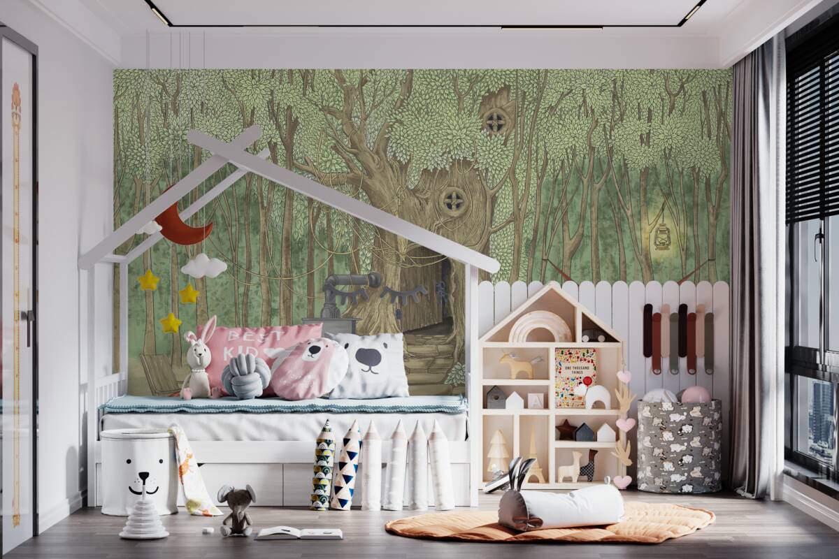 Tapeta Fototapeta Przytulny domek na drzewie w lesie (artykuł a98080 ) z kategorii Fototapety dla Dzieci