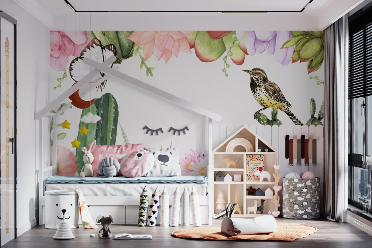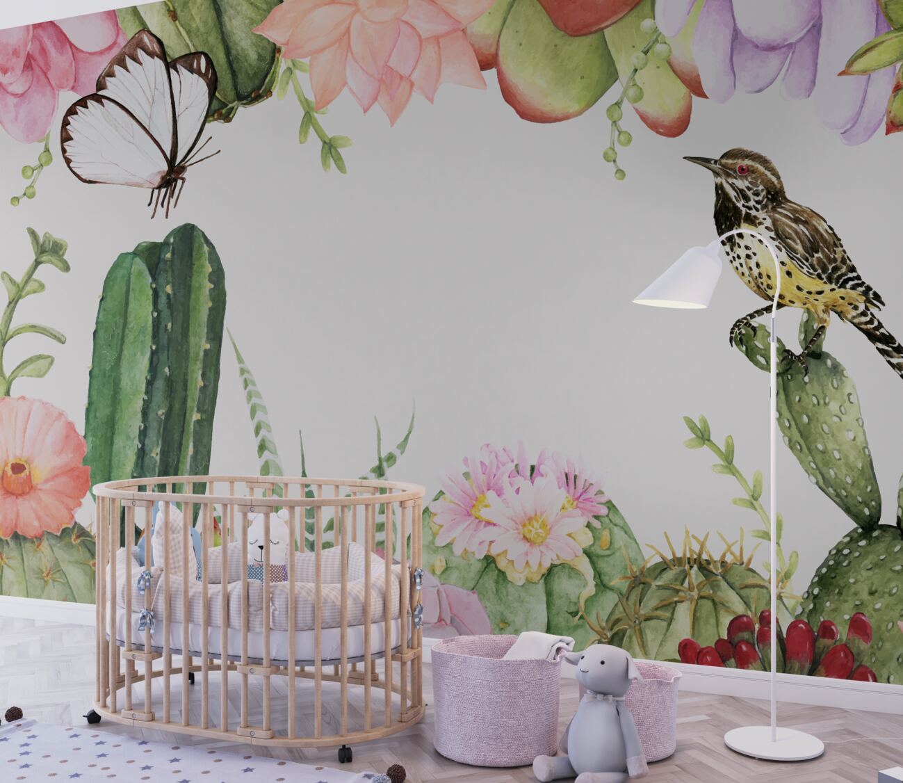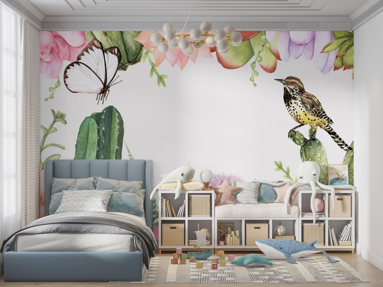 Tapeta Fototapeta Ptak i motyl na kaktusie (artykuł u13972 ) z kategorii Fototapety dla Dzieci