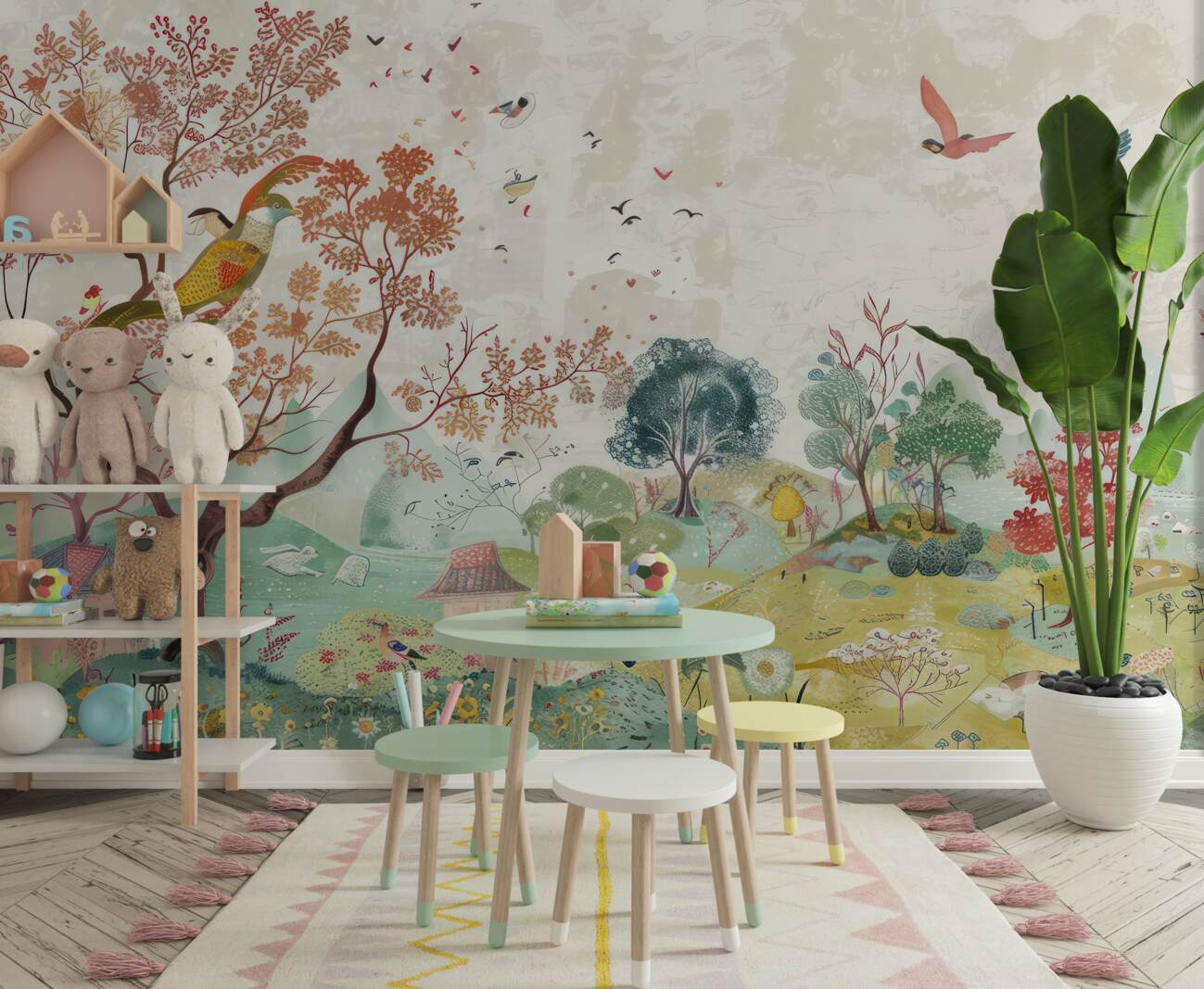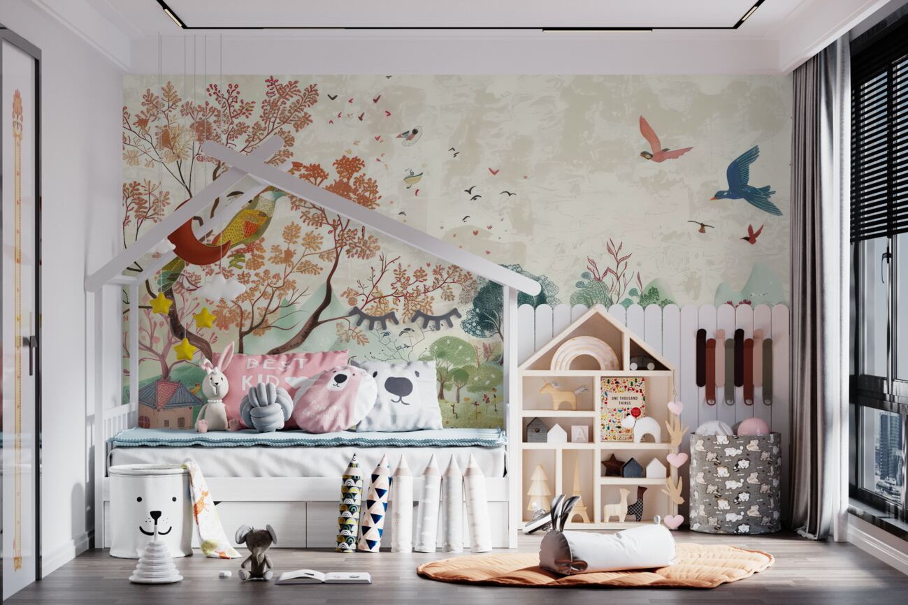 Tapeta Fototapeta Ptaki na drewnie i lotach (artykuł u14315 ) z kategorii Fototapety dla Dzieci