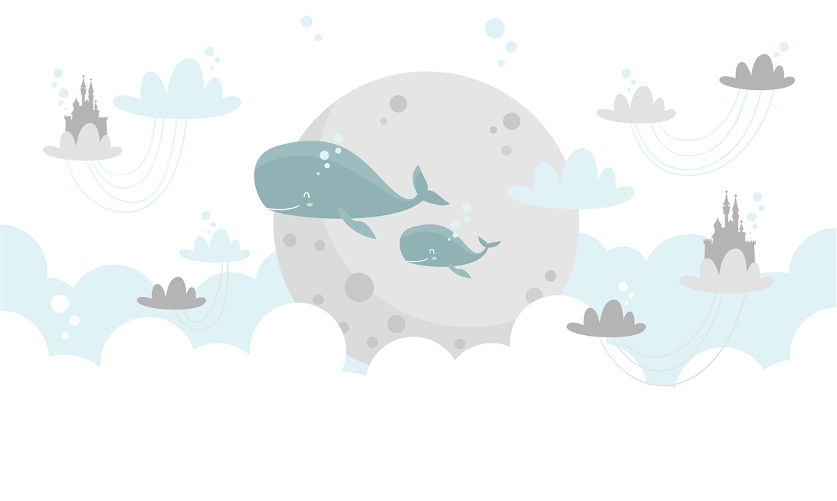Tapeta Fototapeta Rodzina wielorybów leci w chmurach (artykuł a98037 ) z kategorii Fototapety dla Dzieci
