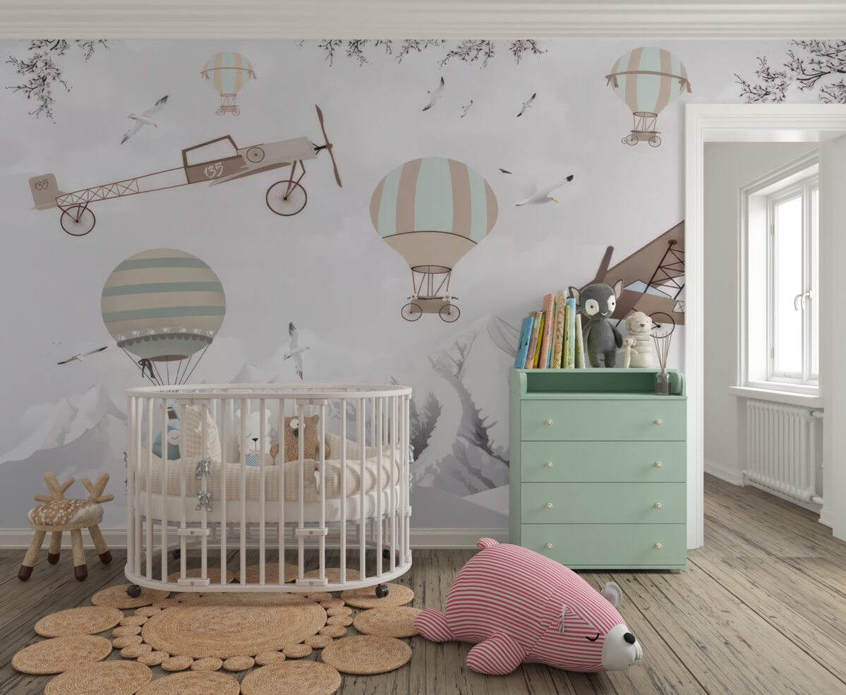 Tapeta Fototapeta Różne samoloty nad górami (artykuł a97808 ) z kategorii Fototapety dla Dzieci