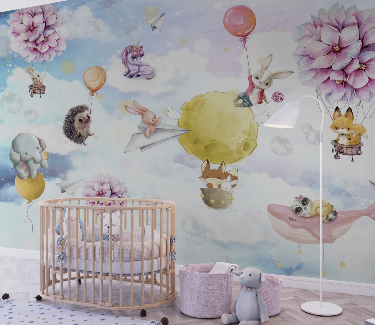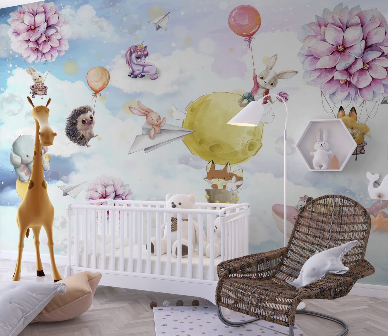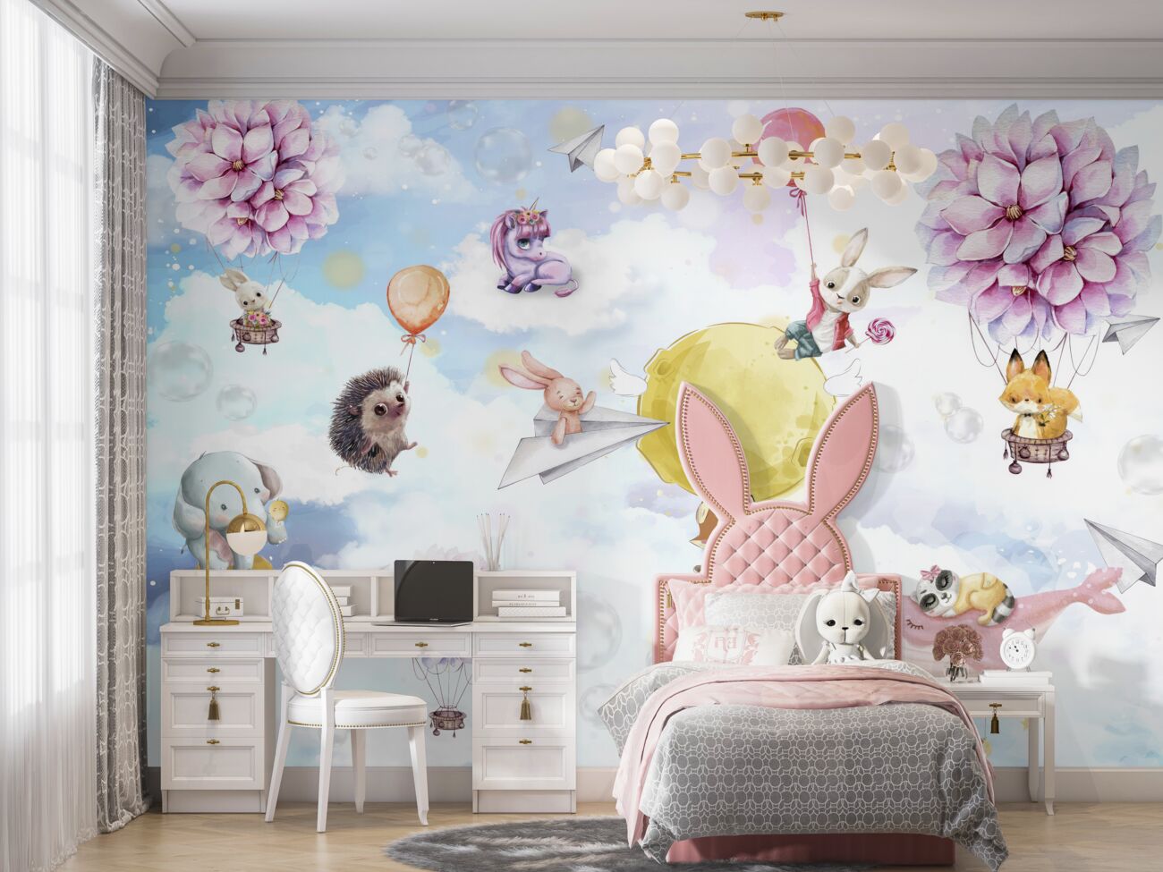 Tapeta Fototapeta Różne zwierzęta latają wśród chmur (artykuł u14583 ) z kategorii Fototapety dla Dzieci