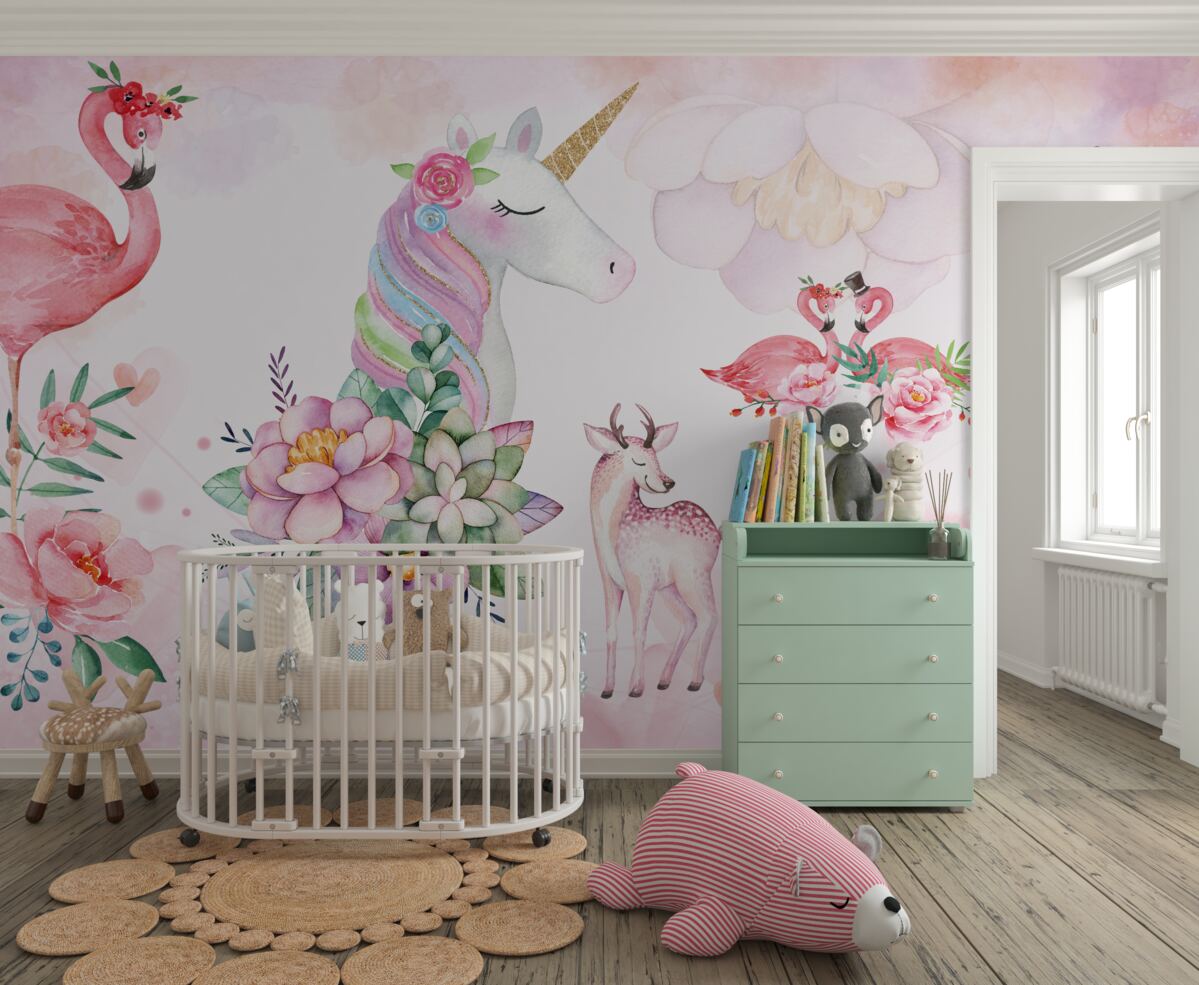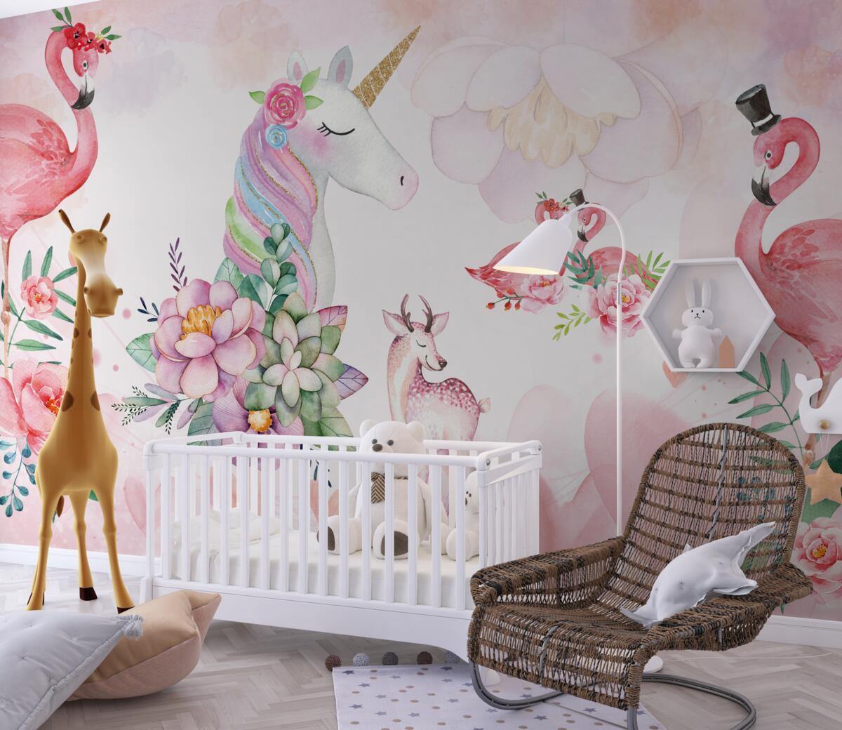Tapeta Fototapeta Różowe zwierzęta z kwiatami (artykuł a98886 ) z kategorii Fototapety dla Dzieci