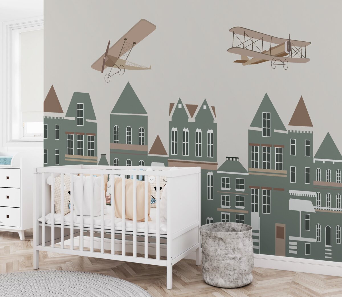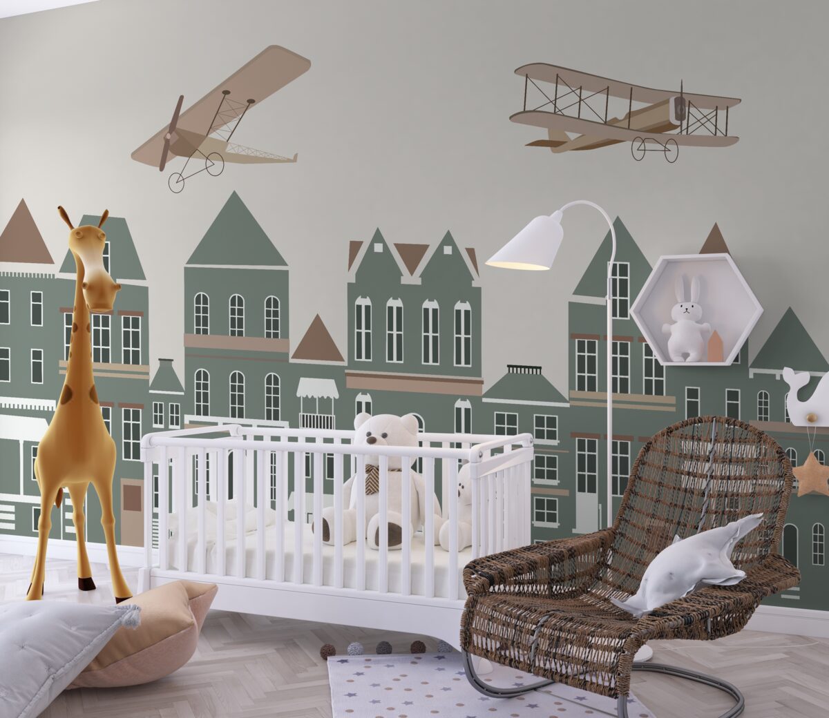 Tapeta Fototapeta Samoloty nad dachami (artykuł a98121 ) z kategorii Fototapety dla Dzieci