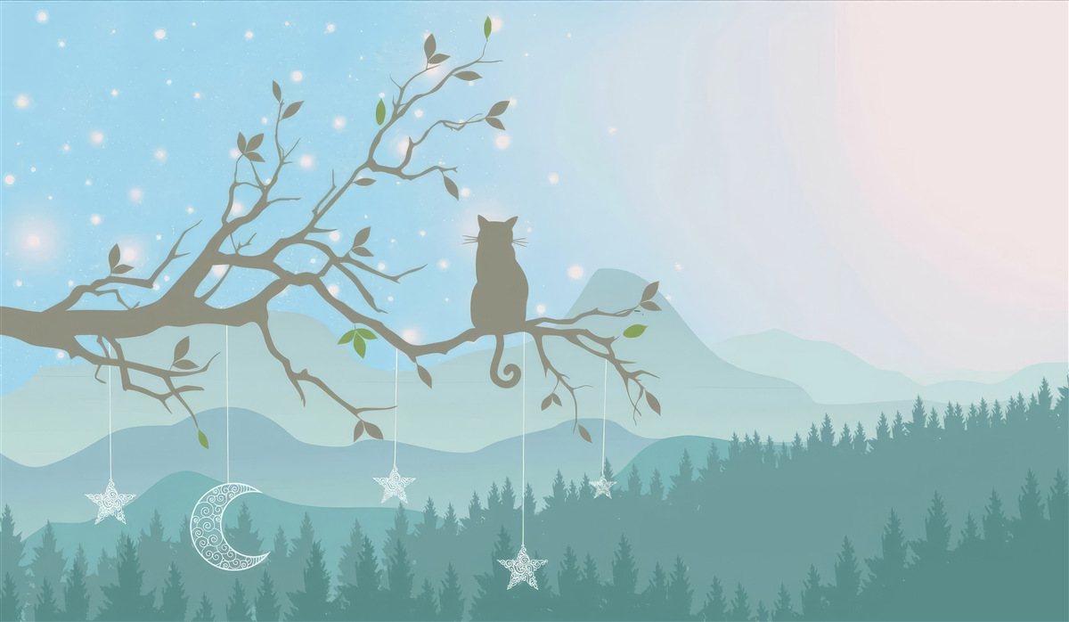 Tapeta Fototapeta Samotny kot siedzi na drzewie (artykuł a97889 ) z kategorii Fototapety dla Dzieci