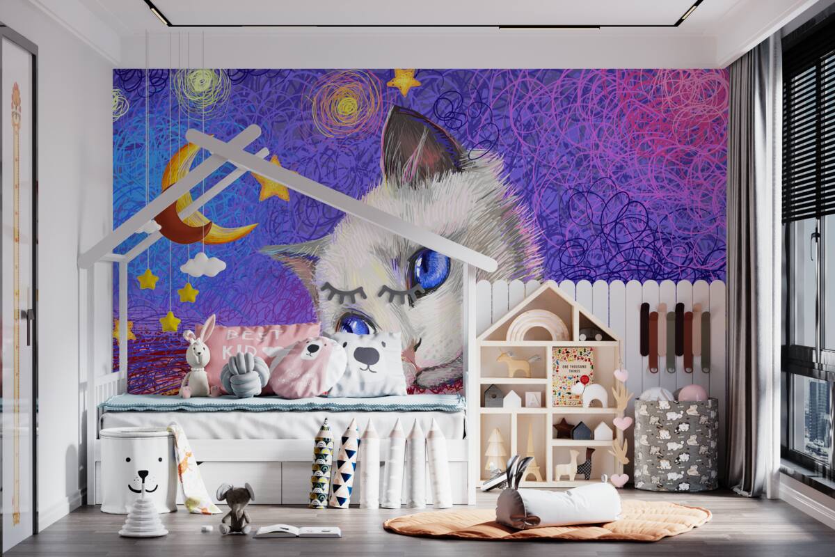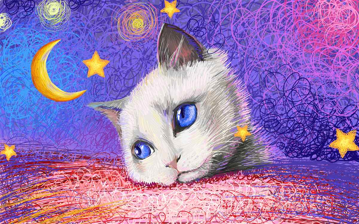Tapeta Fototapeta Słodki kot patrzy na księżyc (artykuł a98052 ) z kategorii Fototapety dla Dzieci
