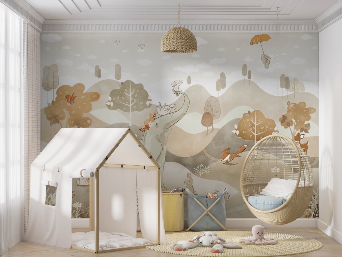 Tapeta Fototapeta Słoń bawi małe króliki (artykuł a98194 ) z kategorii Fototapety dla Dzieci