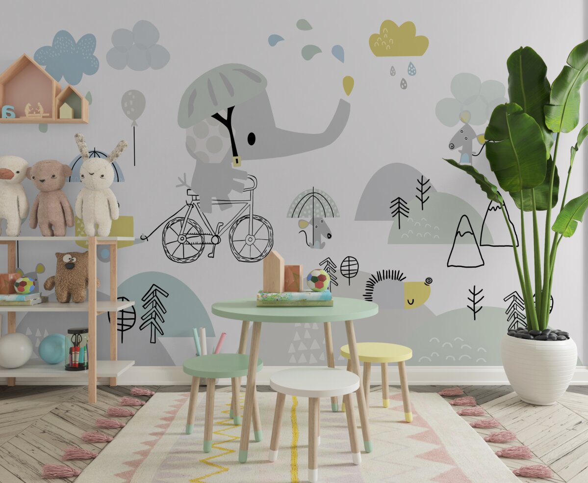 Tapeta Fototapeta Słoń idzie przez góry (artykuł a98824 ) z kategorii Fototapety dla Dzieci