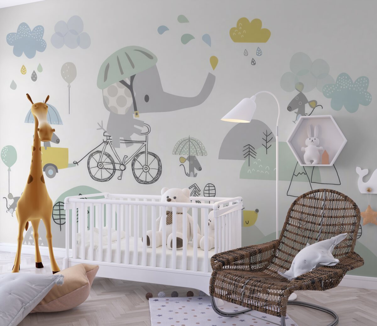 Tapeta Fototapeta Słoń na rowerze i innych zwierzętach (artykuł a97666 ) z kategorii Fototapety dla Dzieci