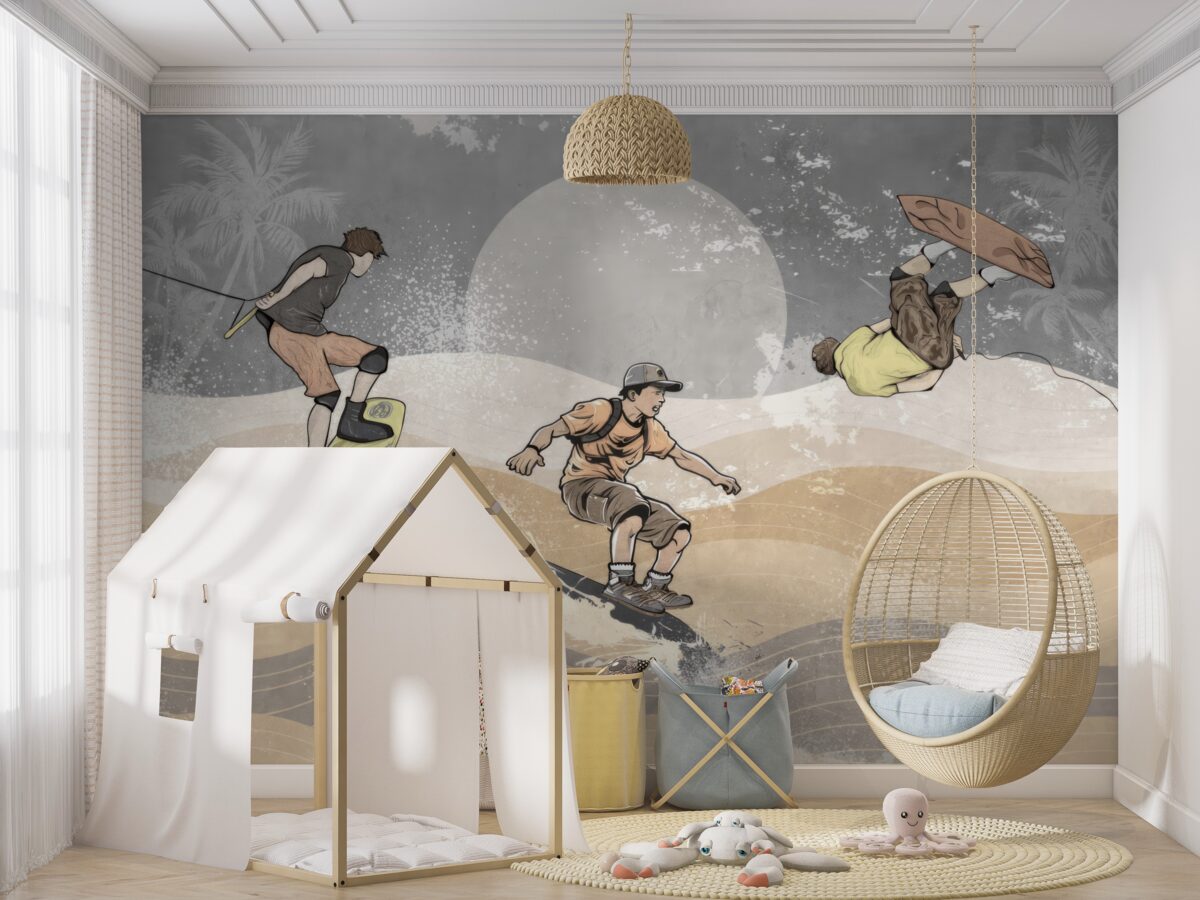 Tapeta Fototapeta Snowboardziści dobrze się bawią (artykuł a98002 ) z kategorii Fototapety dla Dzieci