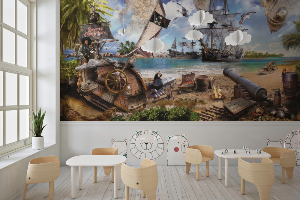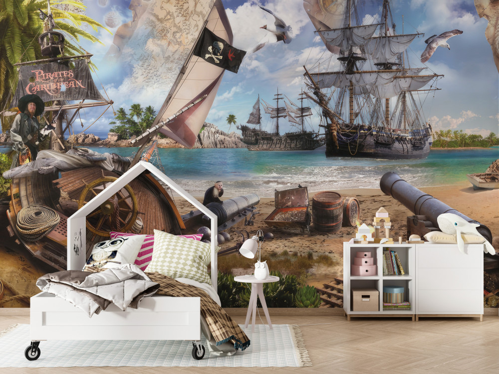 Tapeta Fototapeta statki pirackie i wyspa (artykuł a89886 ) z kategorii Fototapety dla Dzieci