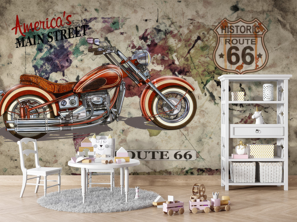 Tapeta Fototapeta stylowy amerykański motocykl (artykuł a90175 ) z kategorii Fototapety dla Dzieci