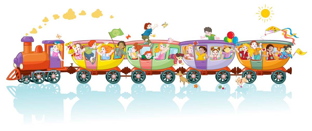 Tapeta Fototapeta Świecąca lokomotywa parowa z dziećmi (artykuł a94895 ) z kategorii Fototapety dla Dzieci