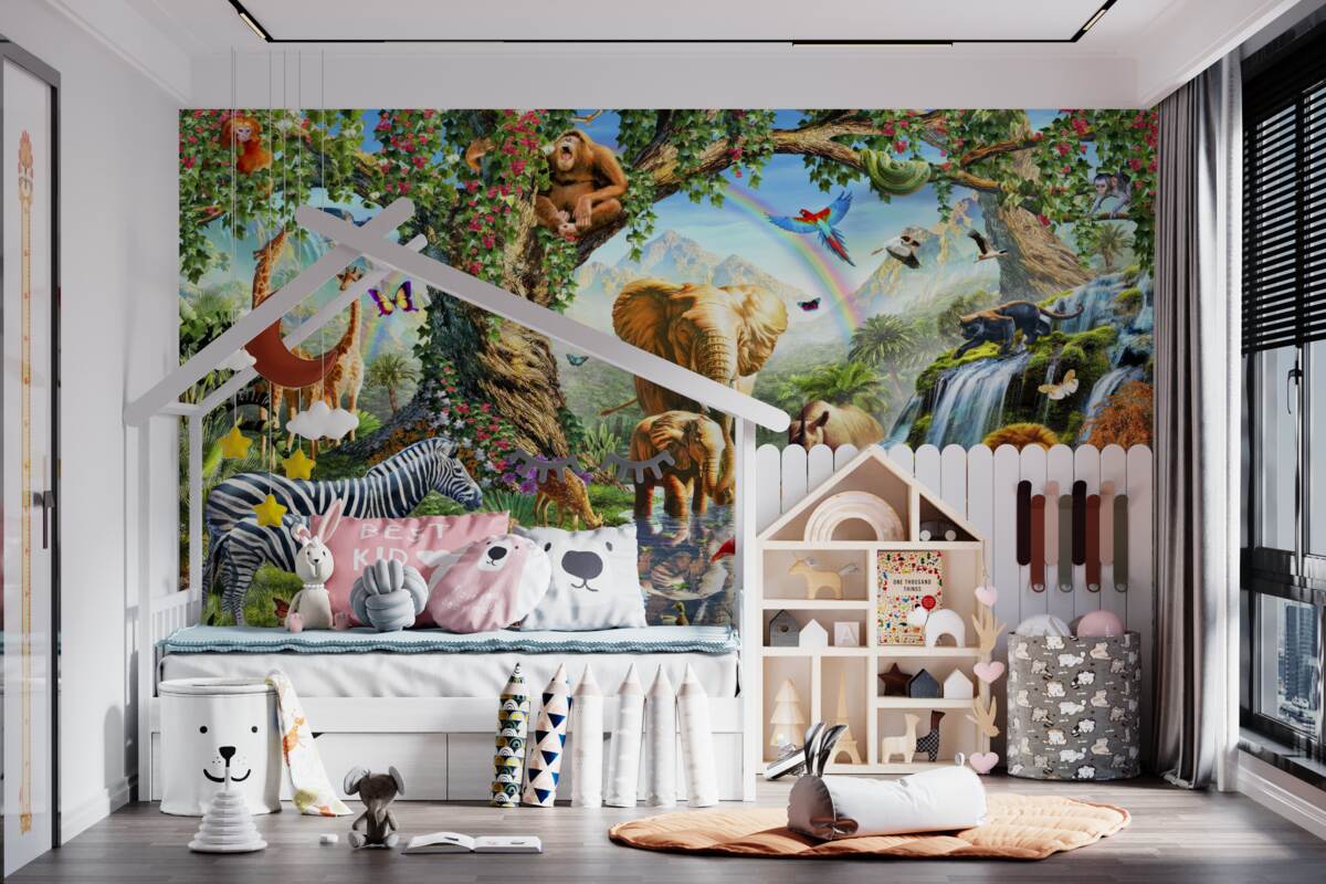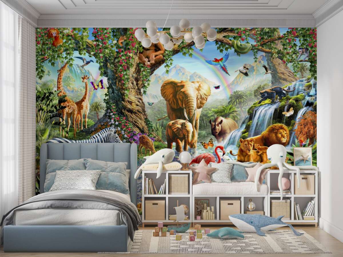 Tapeta Fototapeta Świecący las z różnymi zwierzętami (artykuł a97255 ) z kategorii Fototapety dla Dzieci