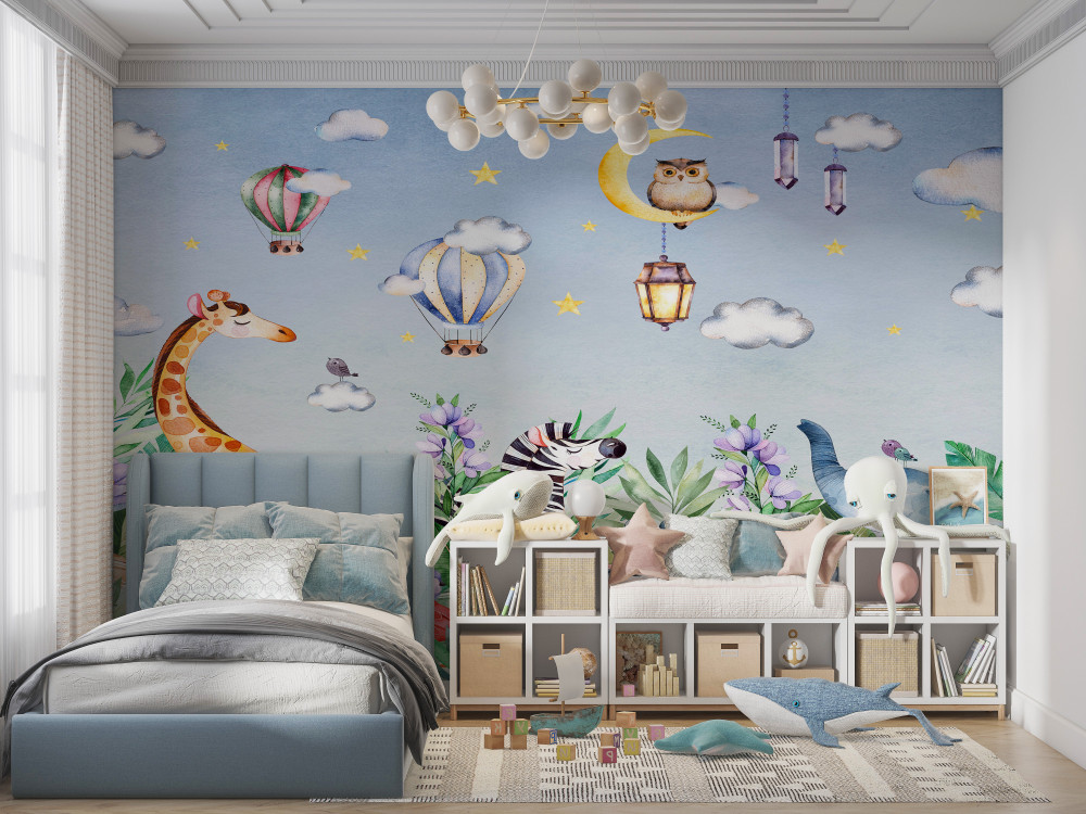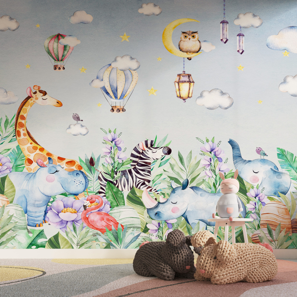 Tapeta Fototapeta urocze zwierzęta i balony (artykuł a93919 ) z kategorii Fototapety dla Dzieci