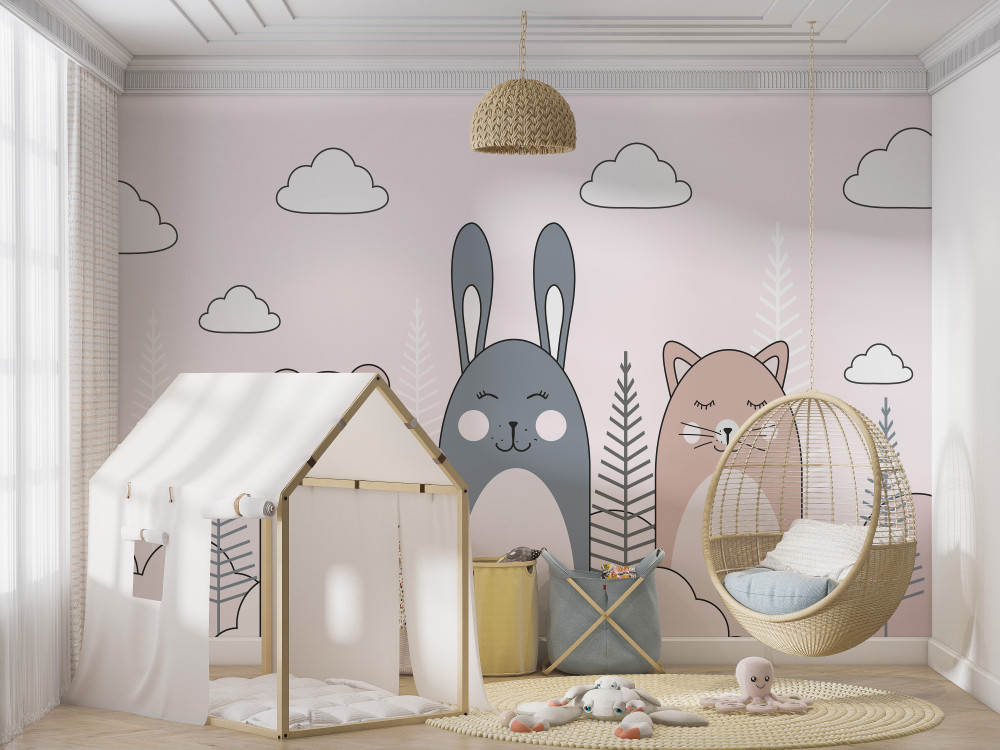 Tapeta Fototapeta uśmiechnięte zwierzęta z zamkniętymi oczami (artykuł a93837 ) z kategorii Fototapety dla Dzieci