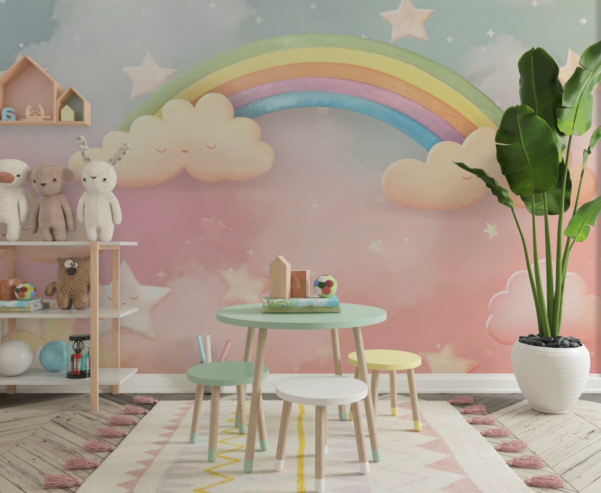 Tapeta Fototapeta Wielka tęcza na niebie z gwiazdami (artykuł a98028 ) z kategorii Fototapety dla Dzieci