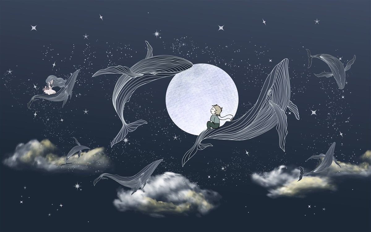 Tapeta Fototapeta Wieloryby w pobliżu księżyca w nocy (artykuł a98580 ) z kategorii Fototapety dla Dzieci