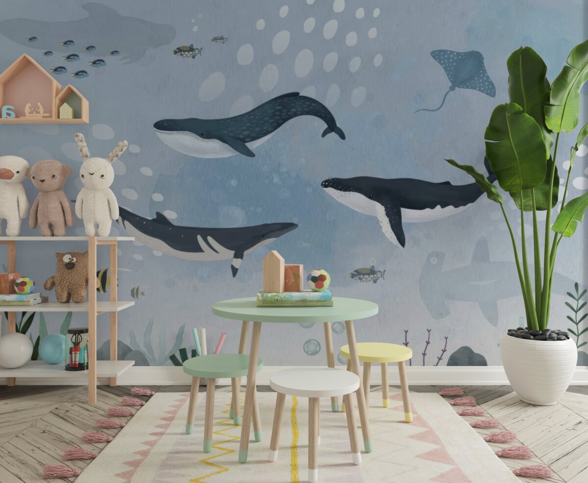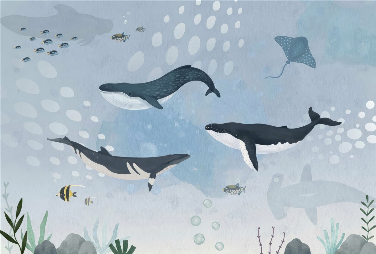 Tapeta Fototapeta Wieloryby w podwodnym królestwie (artykuł a97888 ) z kategorii Fototapety dla Dzieci