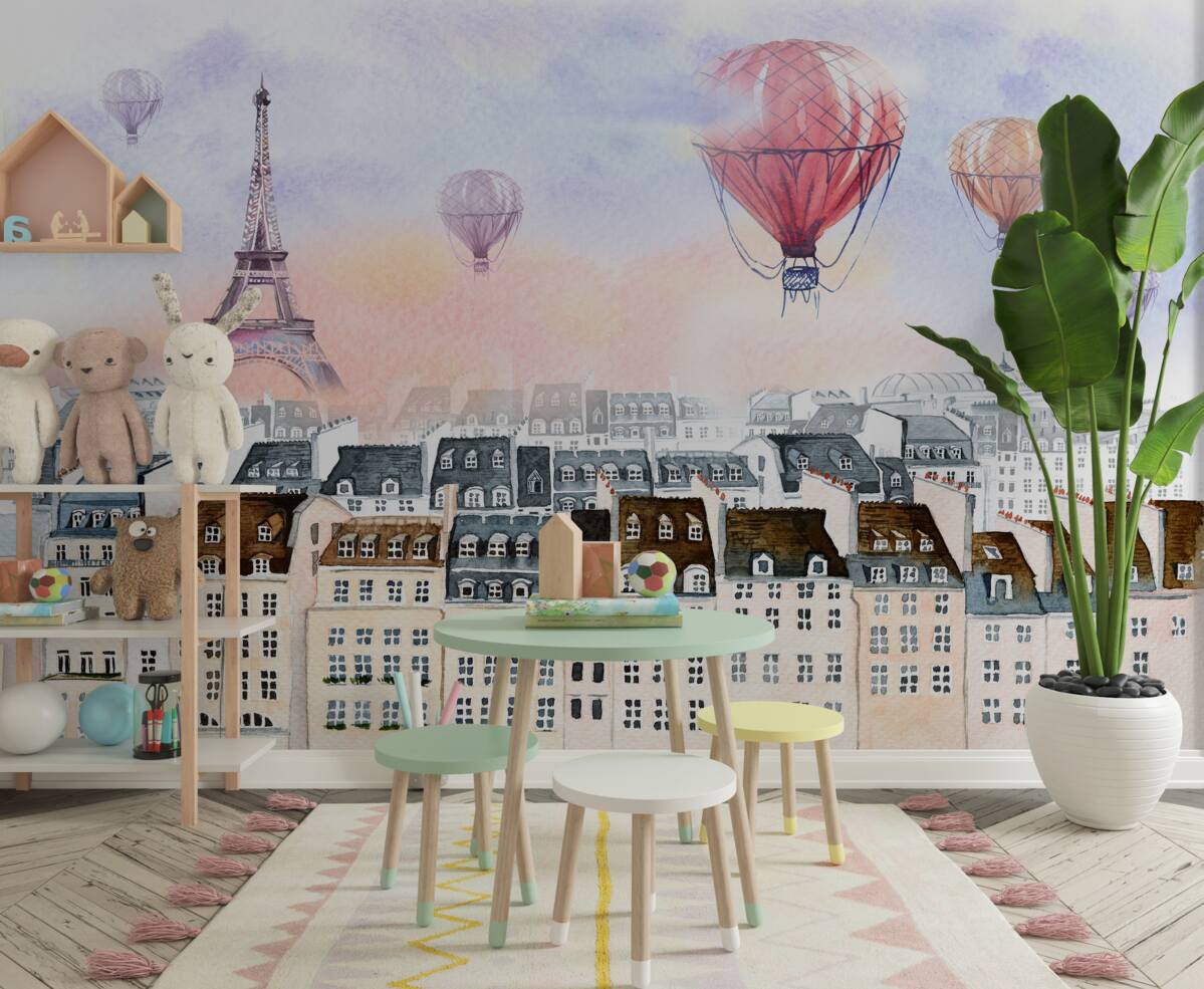 Tapeta Fototapeta Wieża Eiffla i domy Paryża (artykuł a98224 ) z kategorii Fototapety dla Dzieci