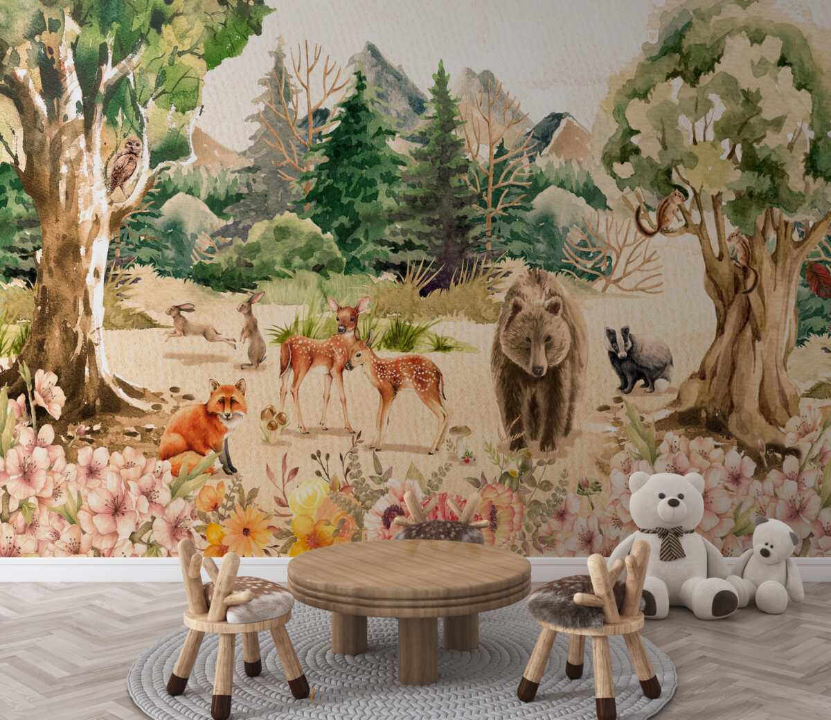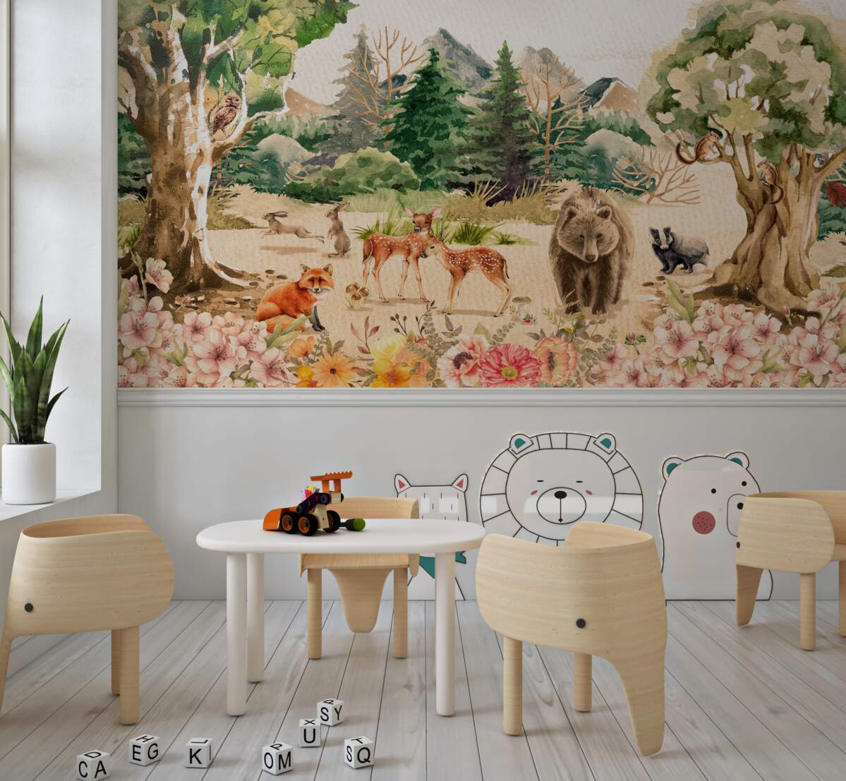 Tapeta Fototapeta Wiosenny las i zwierzęta po śnie (artykuł a98158 ) z kategorii Fototapety dla Dzieci