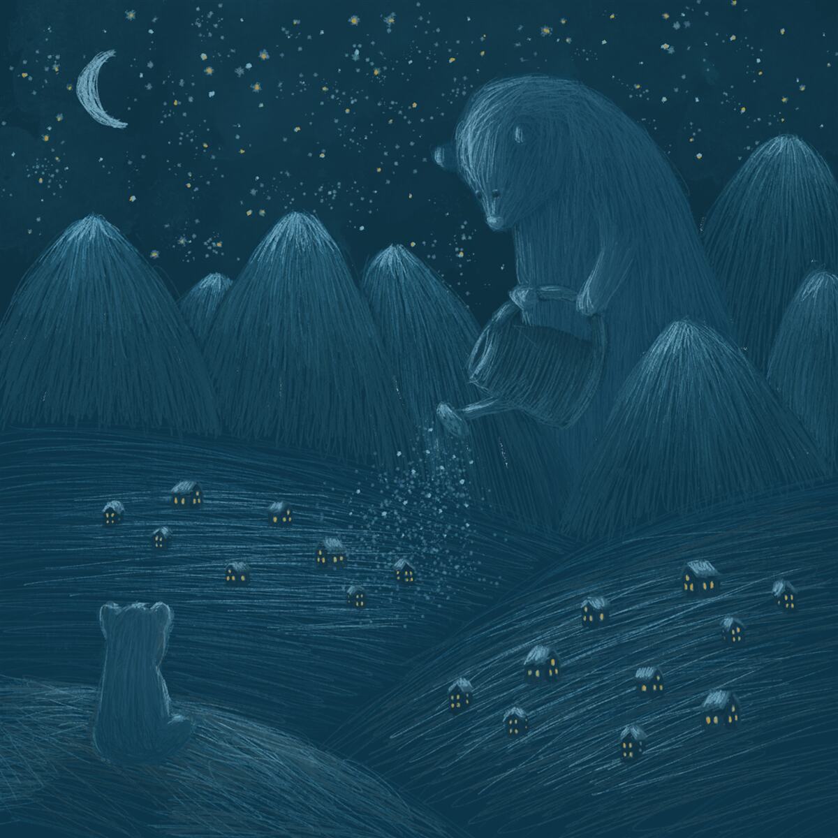 Tapeta Fototapeta Wioska w środku nocy (artykuł a98331 ) z kategorii Fototapety dla Dzieci