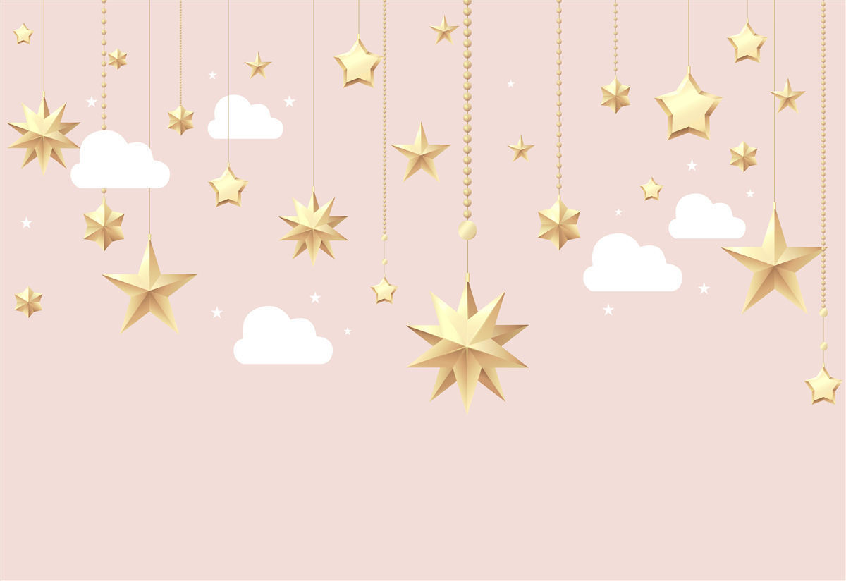 Tapeta Fototapeta Wiszące złote gwiazdki (artykuł a96643 ) z kategorii Fototapety dla Dzieci