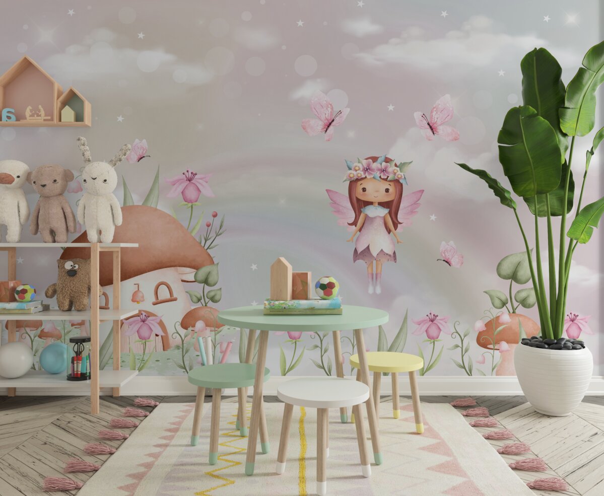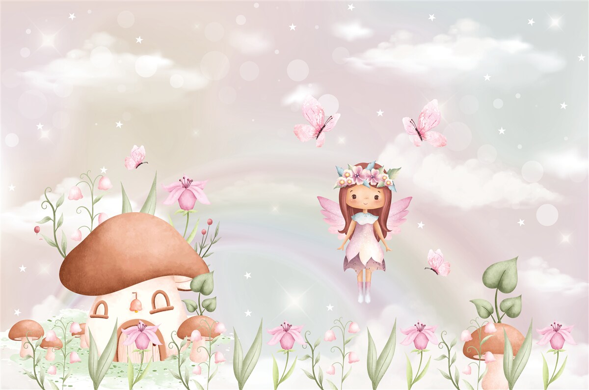 Tapeta Fototapeta Wróżka i jej dom w lesie (artykuł a98197 ) z kategorii Fototapety dla Dzieci