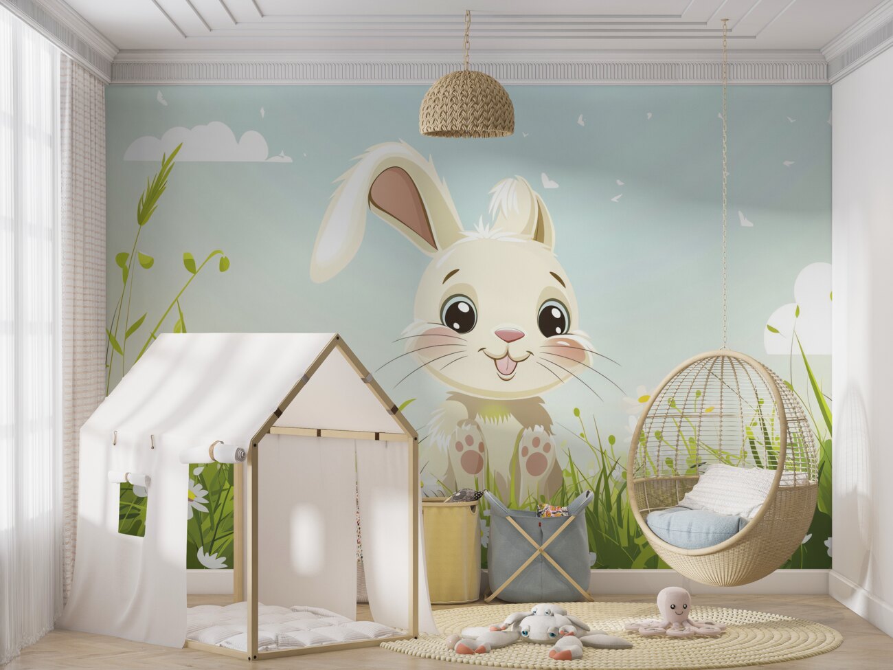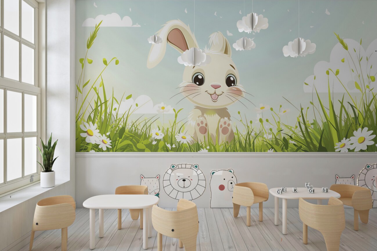 Tapeta Fototapeta Zadowolony królik na trawie (artykuł u14636 ) z kategorii Fototapety dla Dzieci