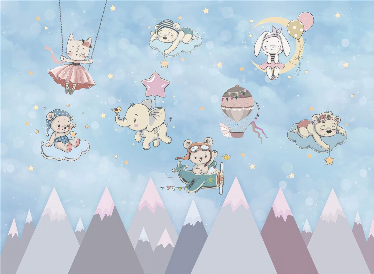Tapeta Fototapeta Zwierzęta bawią się w chmurach (artykuł a98000 ) z kategorii Fototapety dla Dzieci