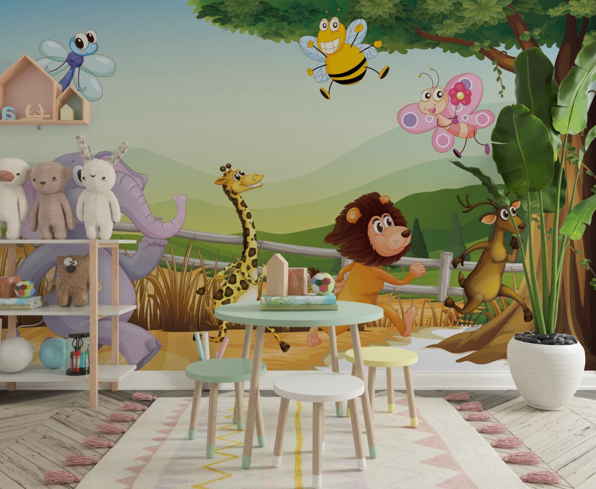 Tapeta Fototapeta Zwierzęta biegają po polu (artykuł a98978 ) z kategorii Fototapety dla Dzieci