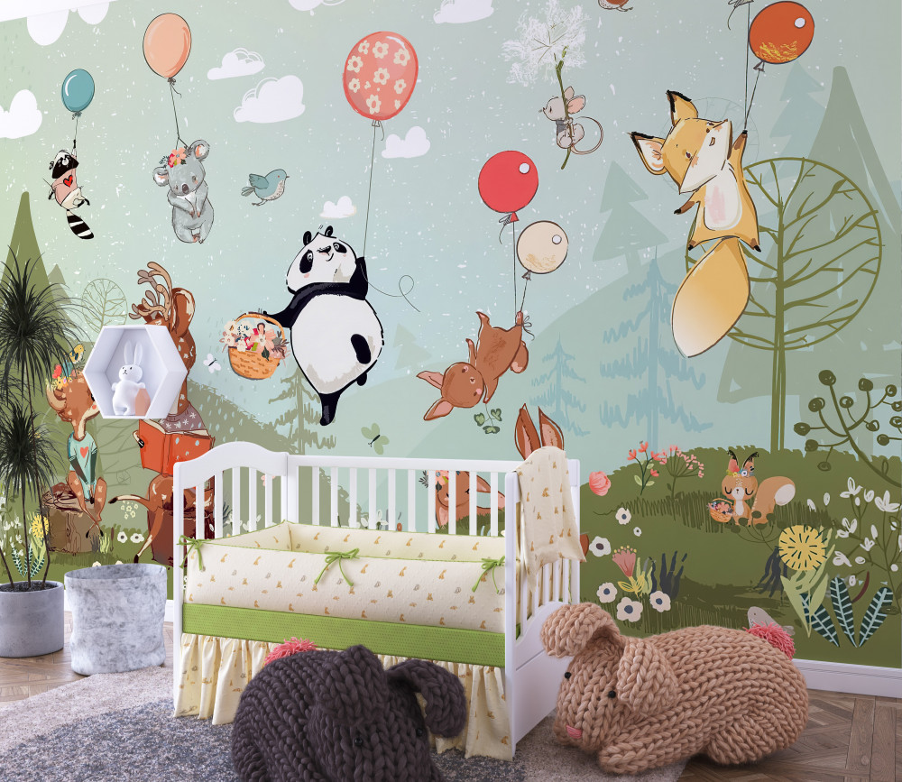 Tapeta Fototapeta zwierzęta latają balonami (artykuł a93895 ) z kategorii Fototapety dla Dzieci