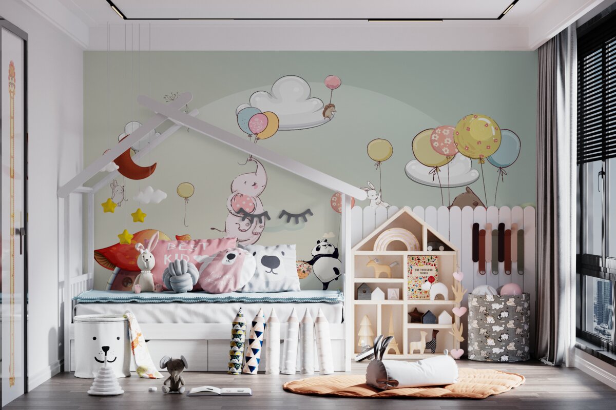 Tapeta Fototapeta Zwierzęta latają na balonach (artykuł a98141 ) z kategorii Fototapety dla Dzieci