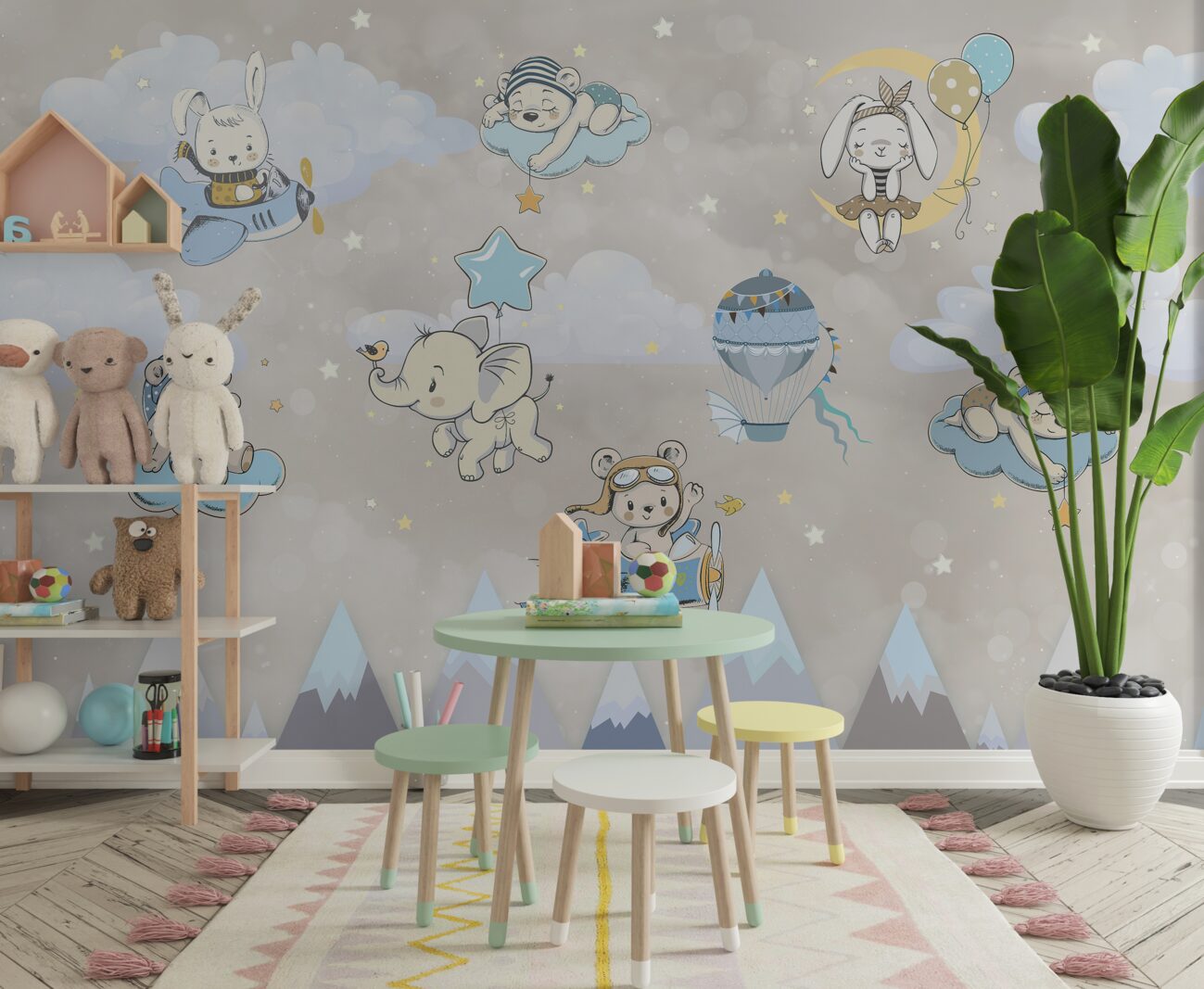 Tapeta Fototapeta Zwierzęta latają nad górami (artykuł a100007 ) z kategorii Fototapety dla Dzieci