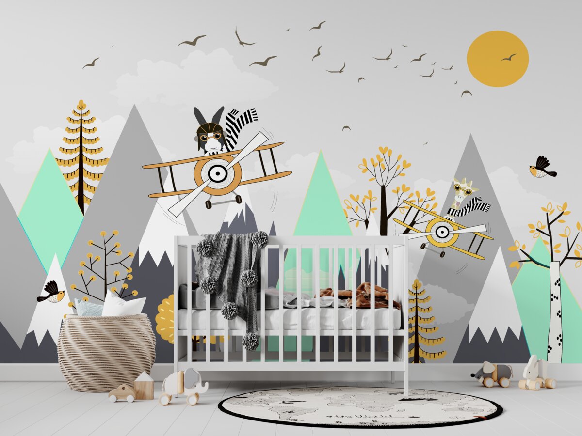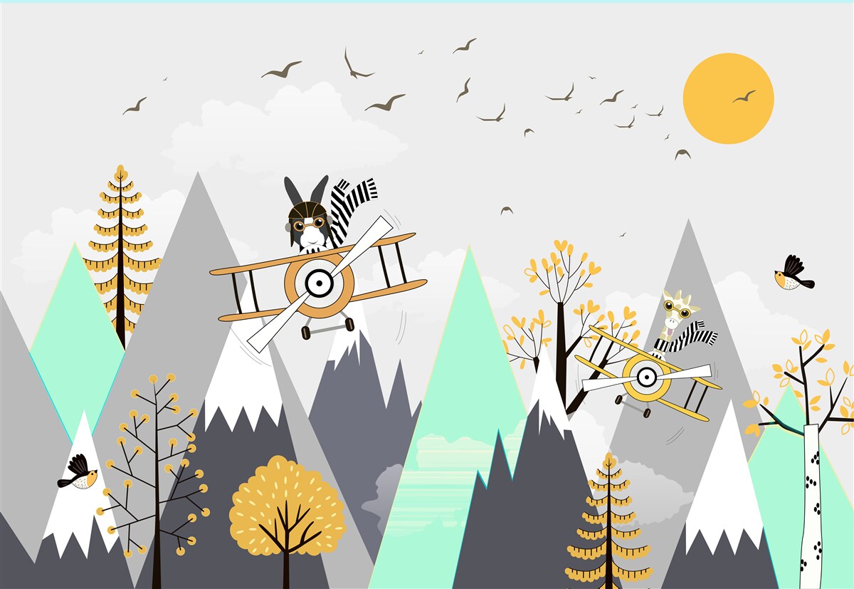 Tapeta Fototapeta Zwierzęta latają nad górami (artykuł a96701 ) z kategorii Fototapety dla Dzieci