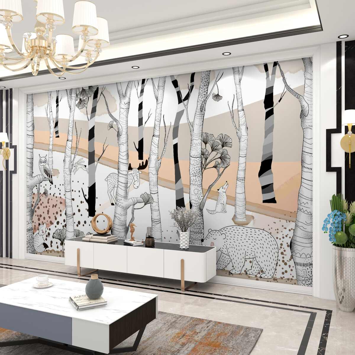 Fototapeta Zwierzęta malowane wśród drzew