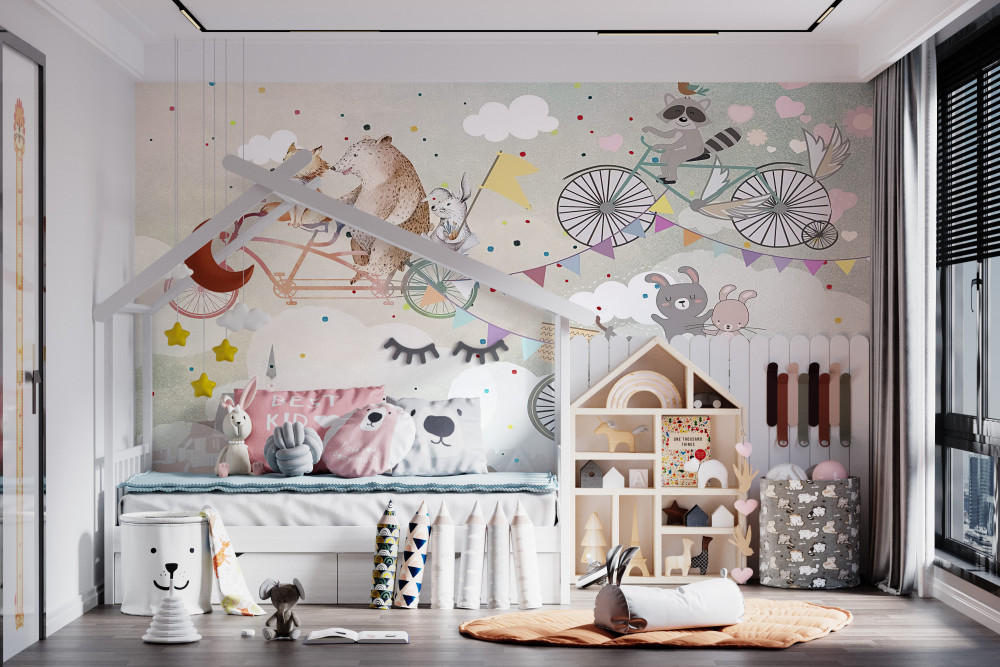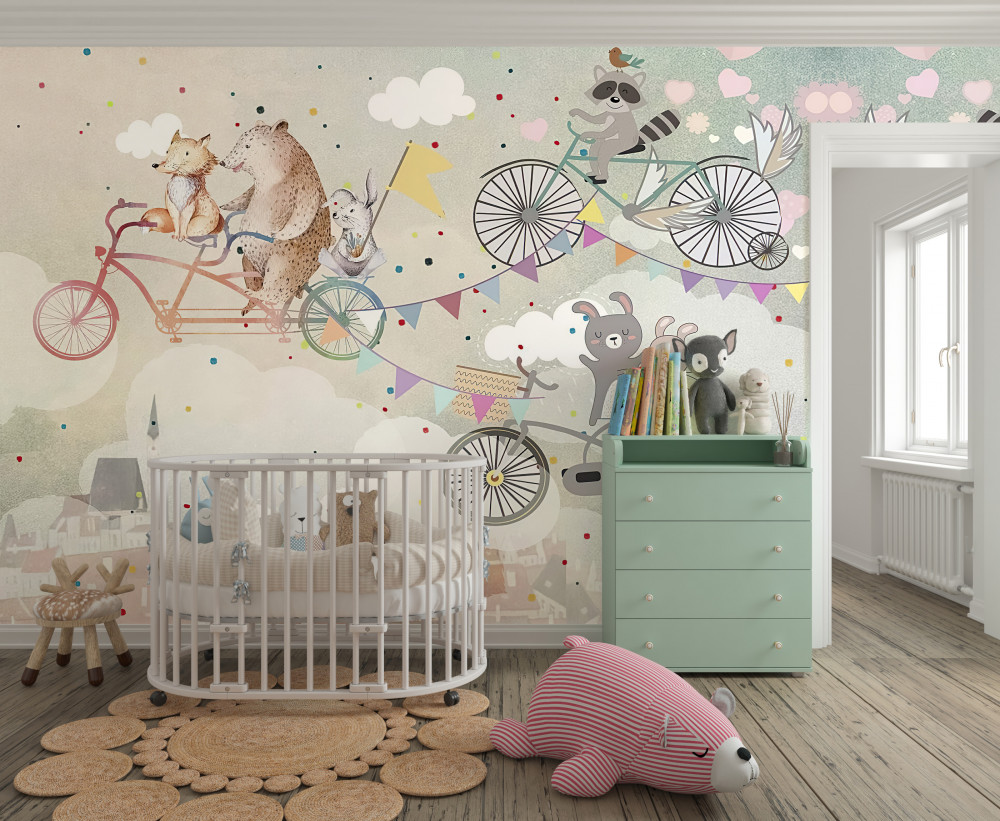 Tapeta Fototapeta zwierzęta na rowerach (artykuł a93893 ) z kategorii Fototapety dla Dzieci