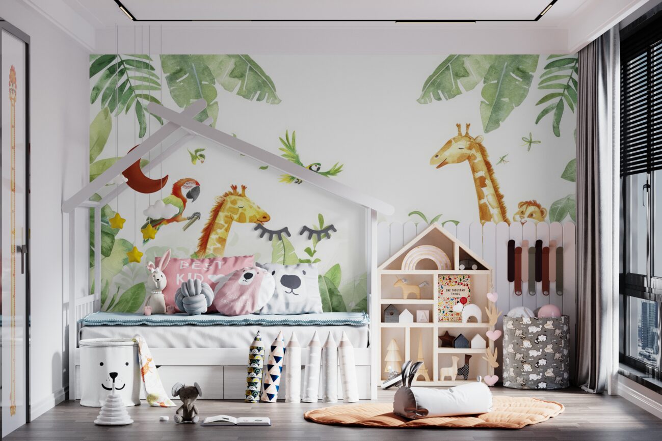 Tapeta Fototapeta Zwierzęta na spacerze zieleni (artykuł u14609 ) z kategorii Fototapety dla Dzieci