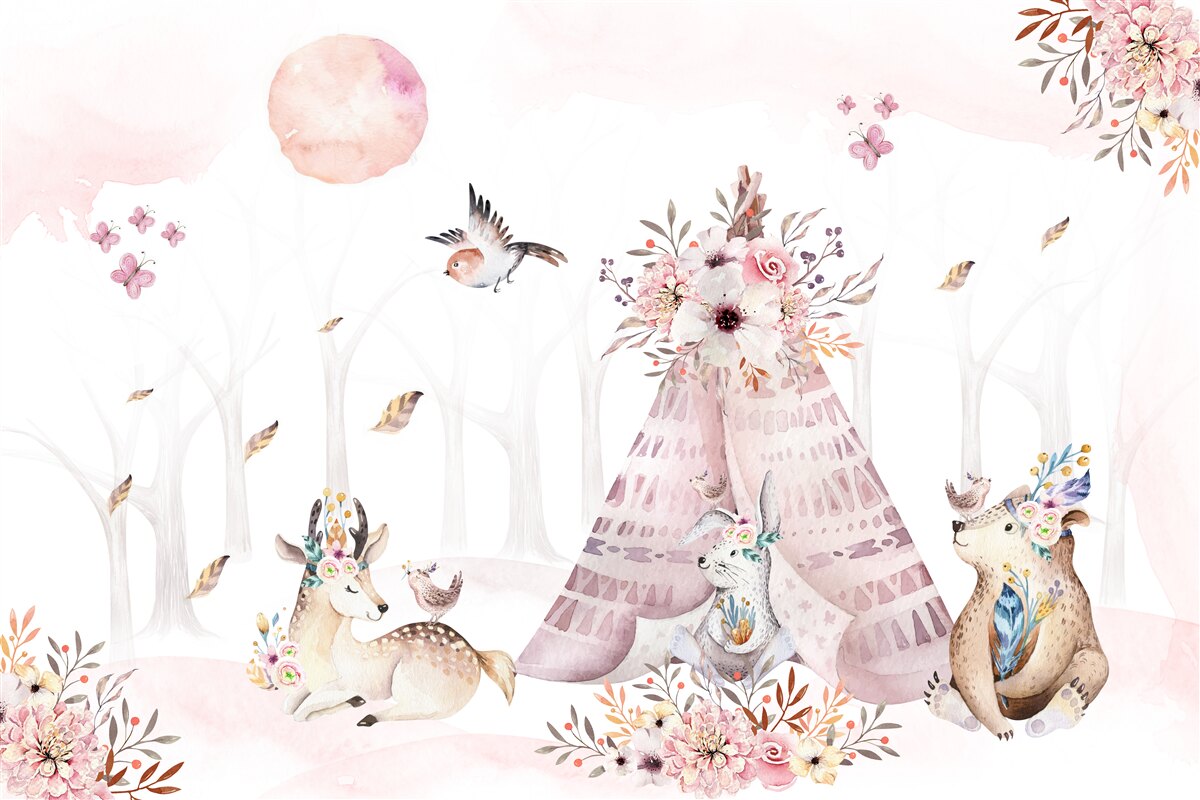 Tapeta Fototapeta Zwierzęta odpoczywające w pobliżu namiotu (artykuł a96390 ) z kategorii Fototapety dla Dzieci