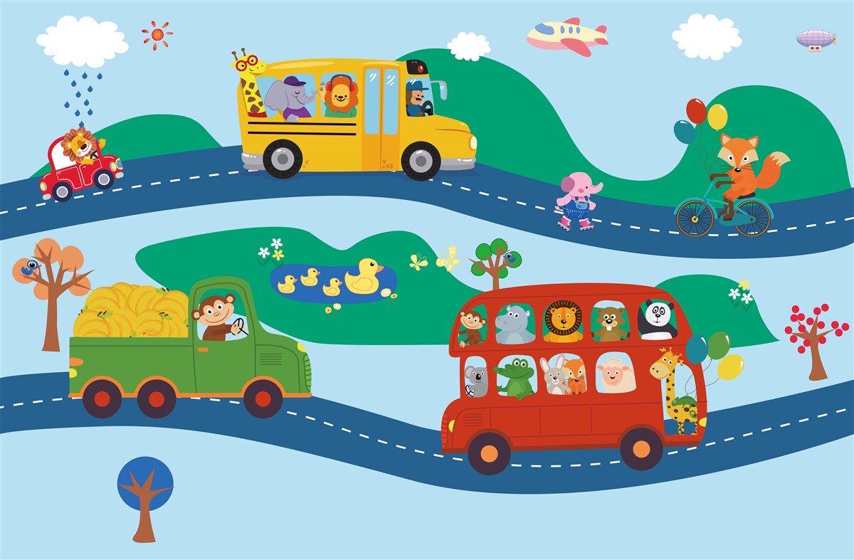 Tapeta Fototapeta Zwierzęta podróżują transportem (artykuł a94452 ) z kategorii Fototapety dla Dzieci