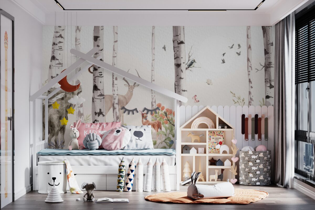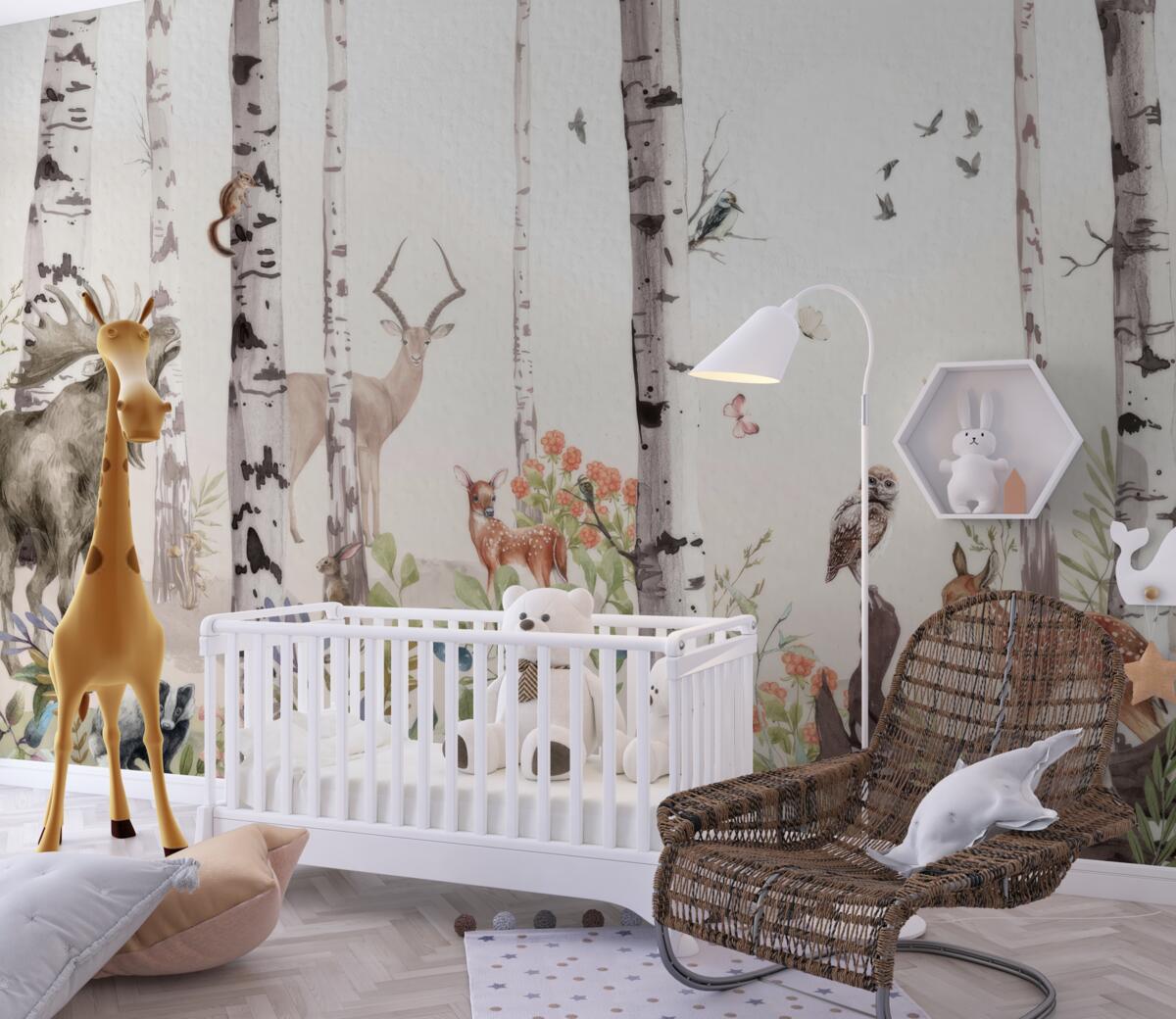 Tapeta Fototapeta Zwierzęta spacerują po lesie wśród drzew (artykuł a97916 ) z kategorii Fototapety dla Dzieci
