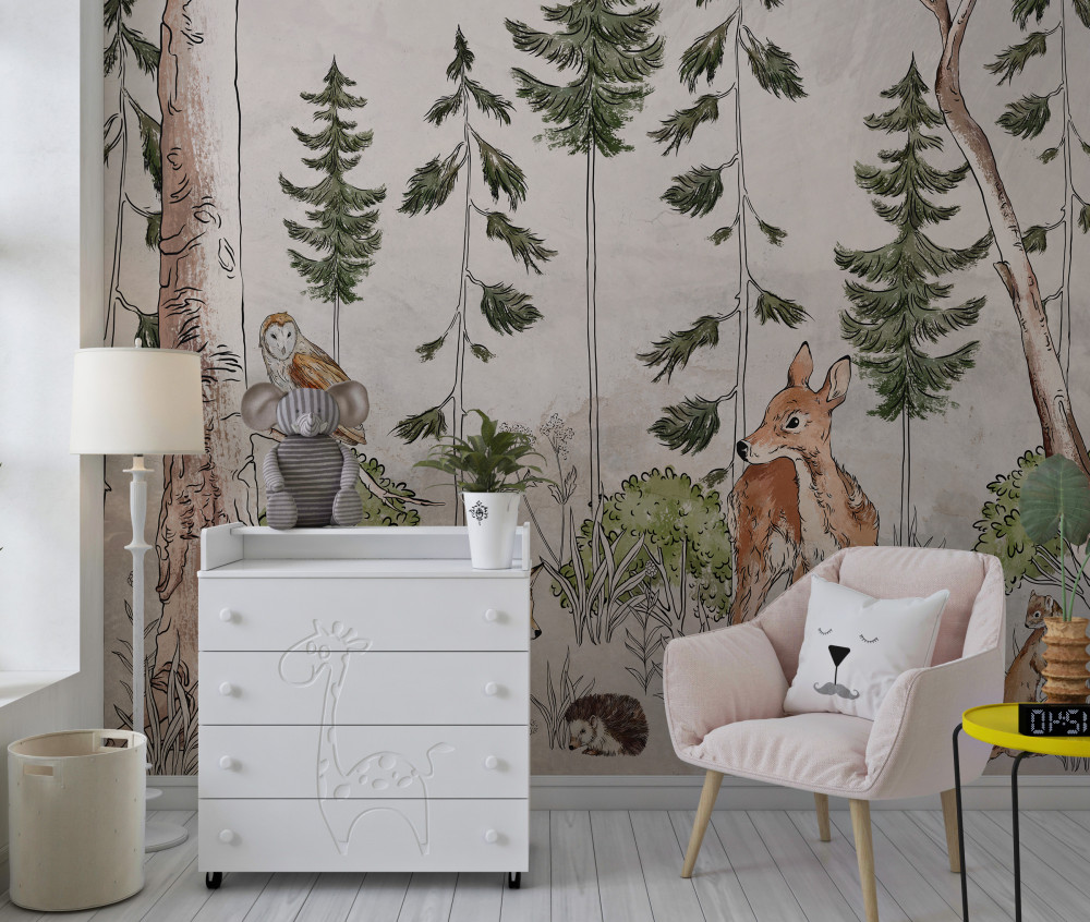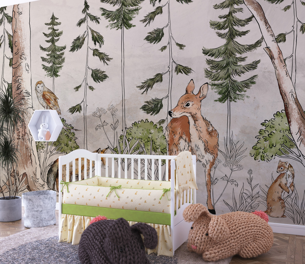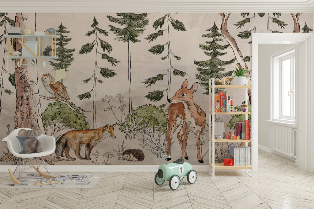 Tapeta Fototapeta zwierzęta spacerujące po lesie (artykuł a93909 ) z kategorii Fototapety dla Dzieci