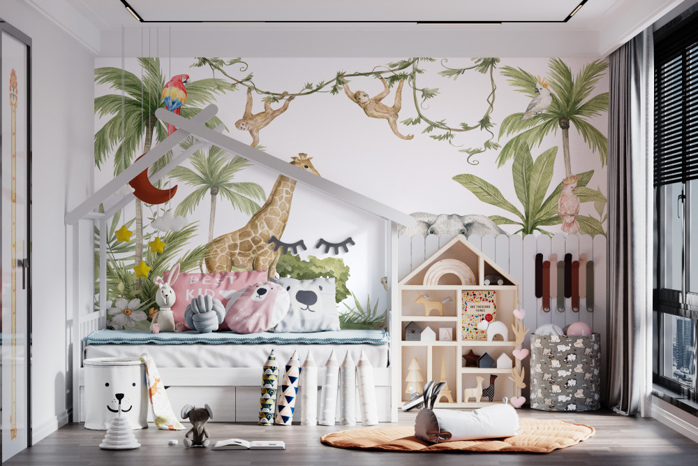 Tapeta Fototapeta zwierzęta tropikalnej dżungli (artykuł a93847 ) z kategorii Fototapety dla Dzieci