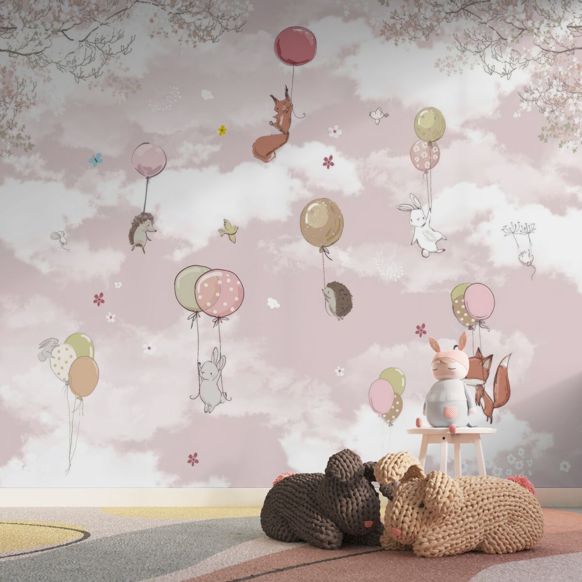 Tapeta Fototapeta Zwierzęta unoszące się na balonach (artykuł a97290 ) z kategorii Fototapety dla Dzieci