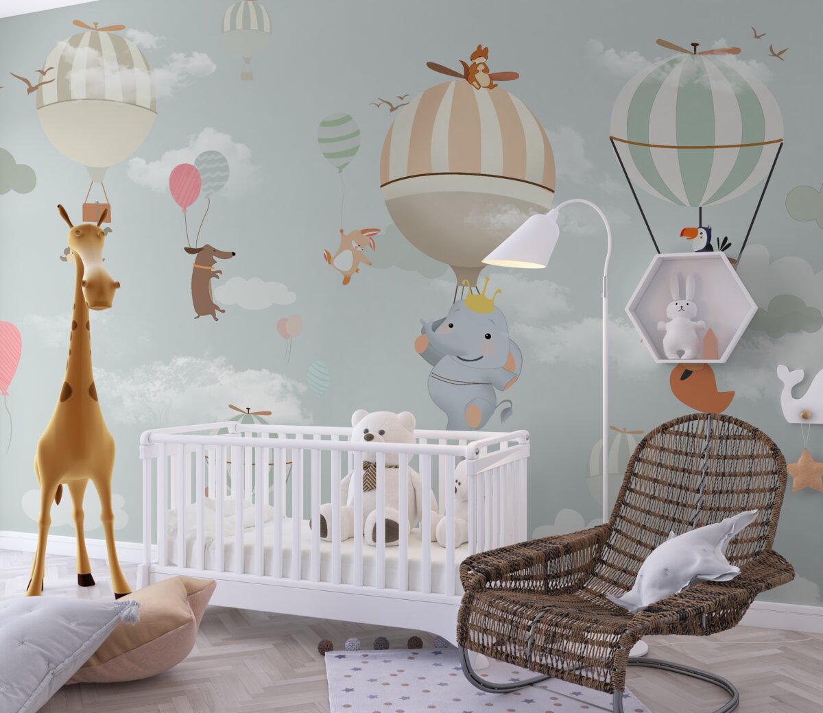 Tapeta Fototapeta Zwierzęta wspinają się na balony i balony (artykuł a96442 ) z kategorii Fototapety dla Dzieci