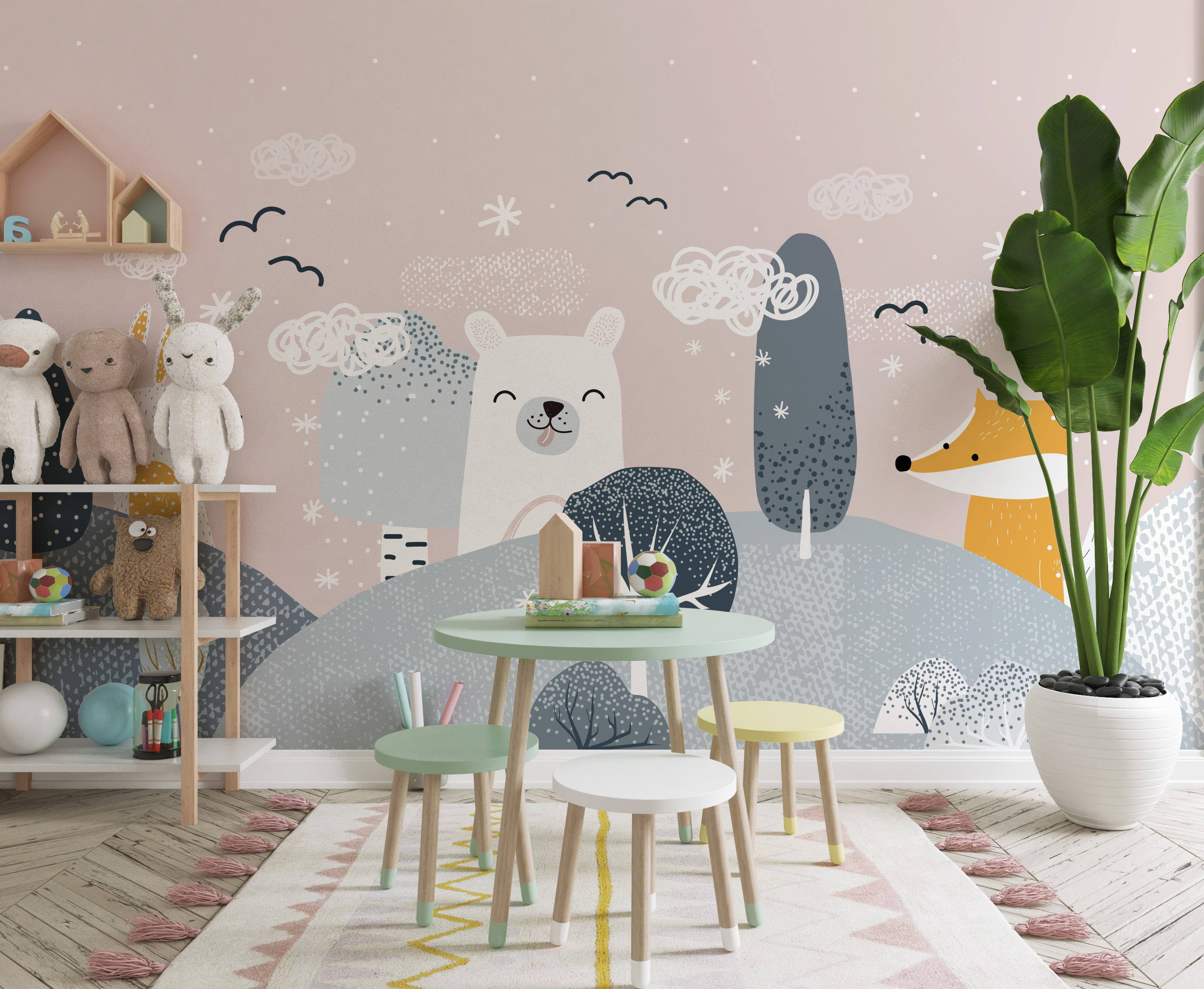 Tapeta Fototapeta Zwierzęta z kreskówek w lesie (artykuł a94011 ) z kategorii Fototapety dla Dzieci