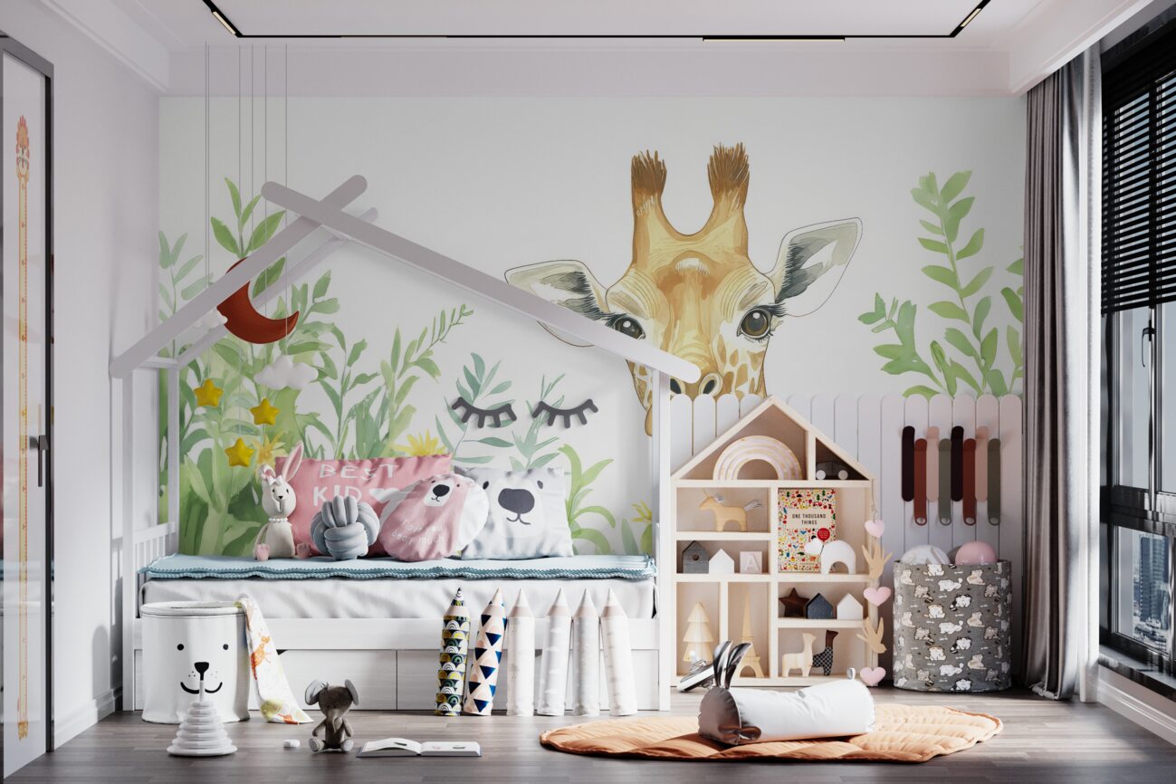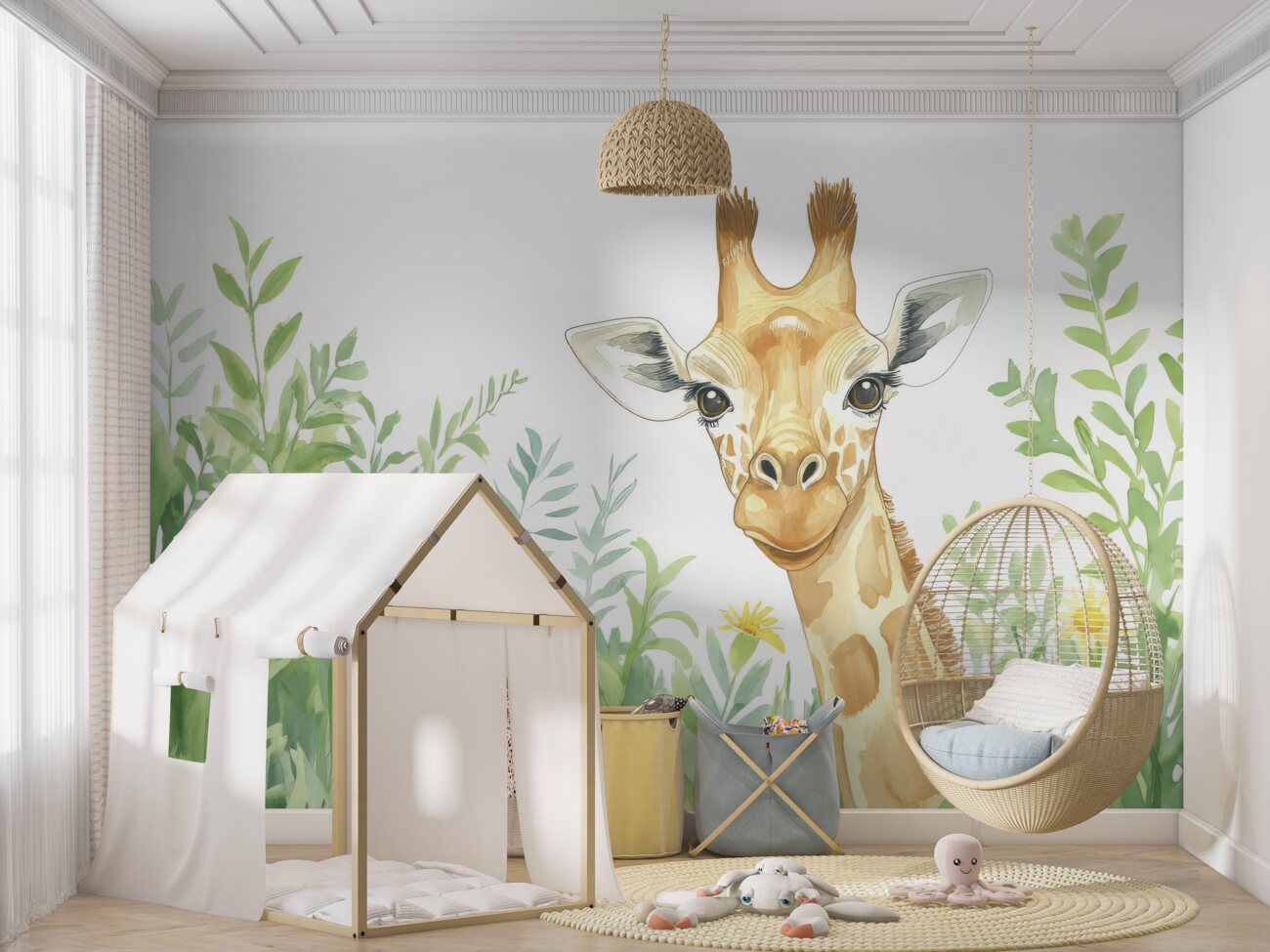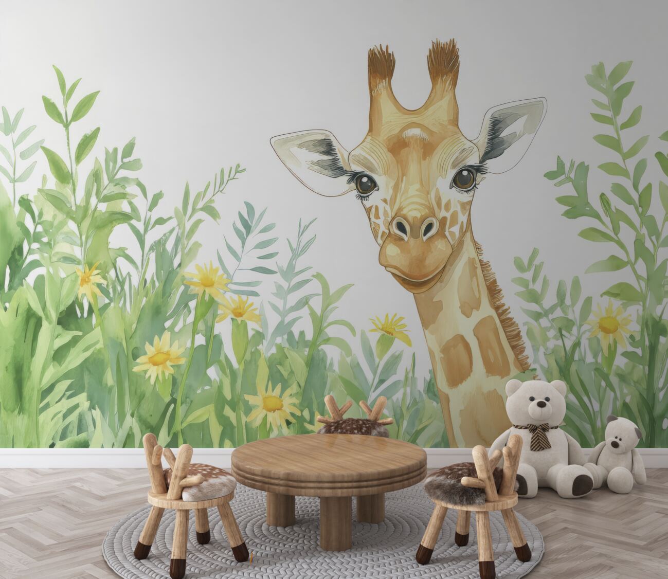 Tapeta Fototapeta Żyrafa wygląda na trawę (artykuł u14650 ) z kategorii Fototapety dla Dzieci