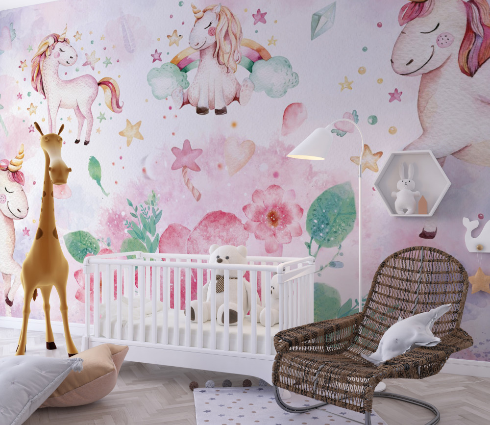 Tapeta Fototapeta jednorożce w kwiatach (artykuł a89844 ) z kategorii Fototapety dla Dziewczynek