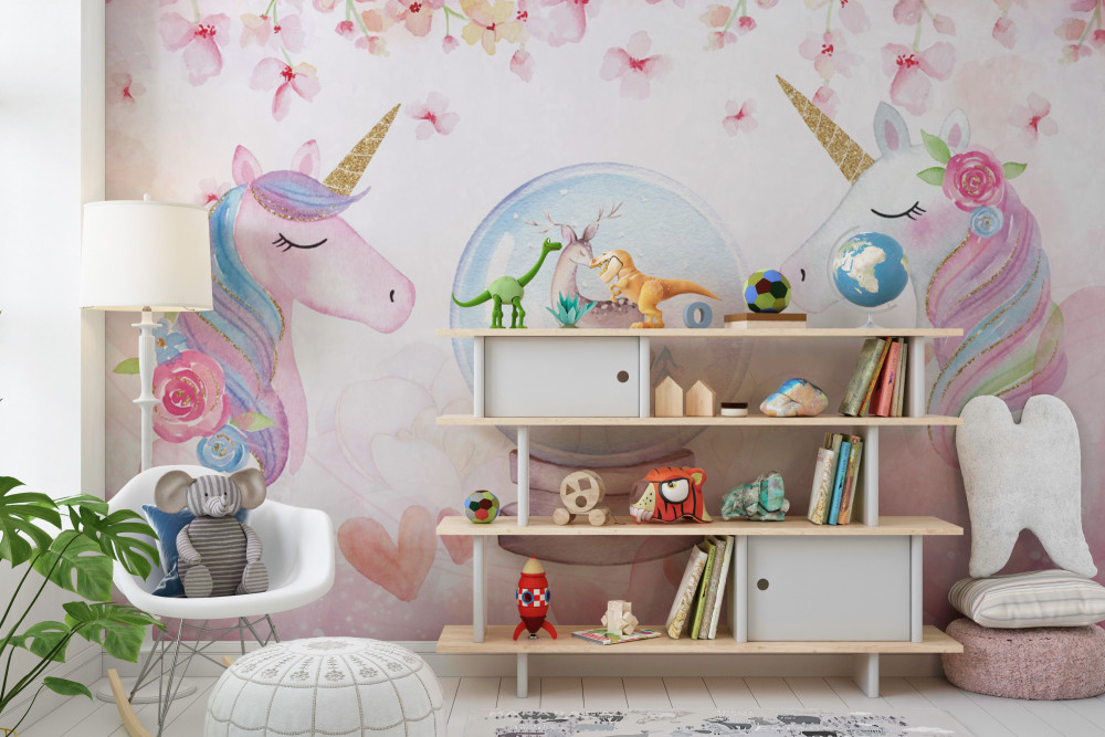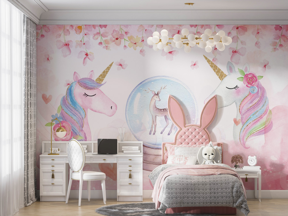 Tapeta Fototapeta jeleń w szklanej kuli i jednorożce (artykuł a89833 ) z kategorii Fototapety dla Dziewczynek
