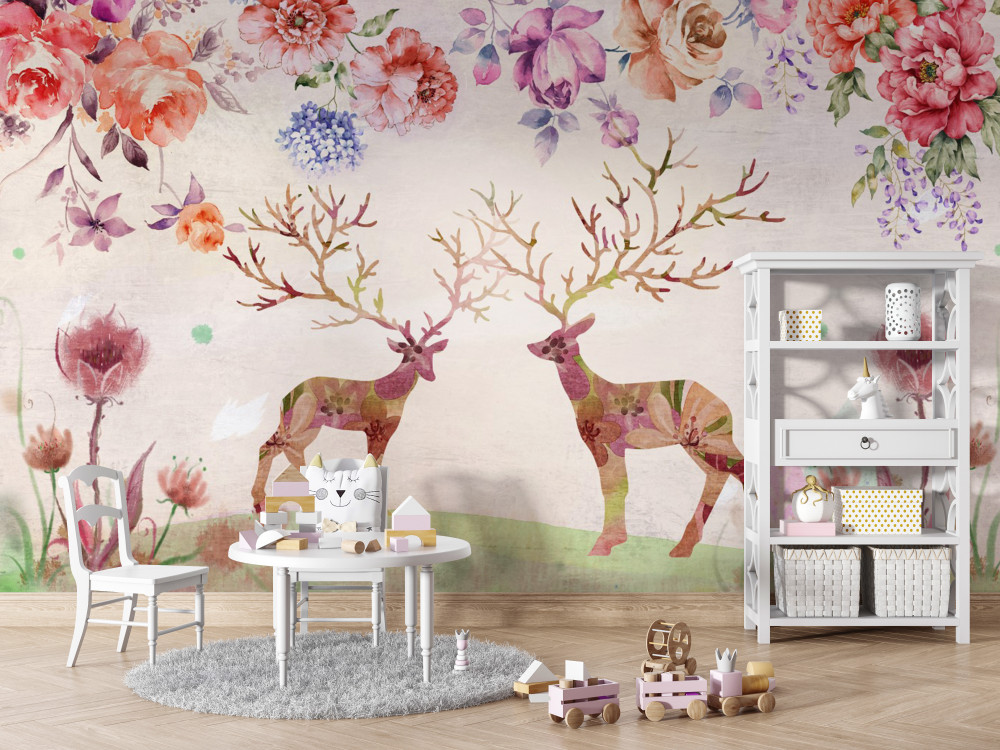 Tapeta Fototapeta jelenie w kwiatach (artykuł a89831 ) z kategorii Fototapety dla Dziewczynek